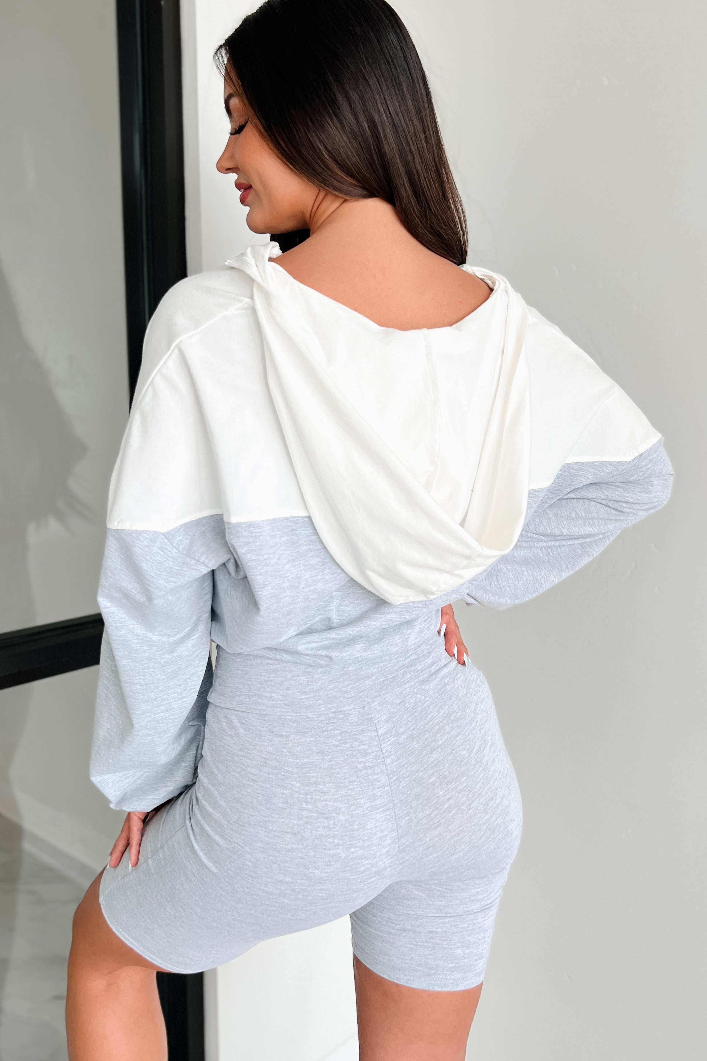 - Top: Pullover Style, Colorblock Pattern, Hooded, Half-Zip, Drawstring Hem, Slightly Cropped Length