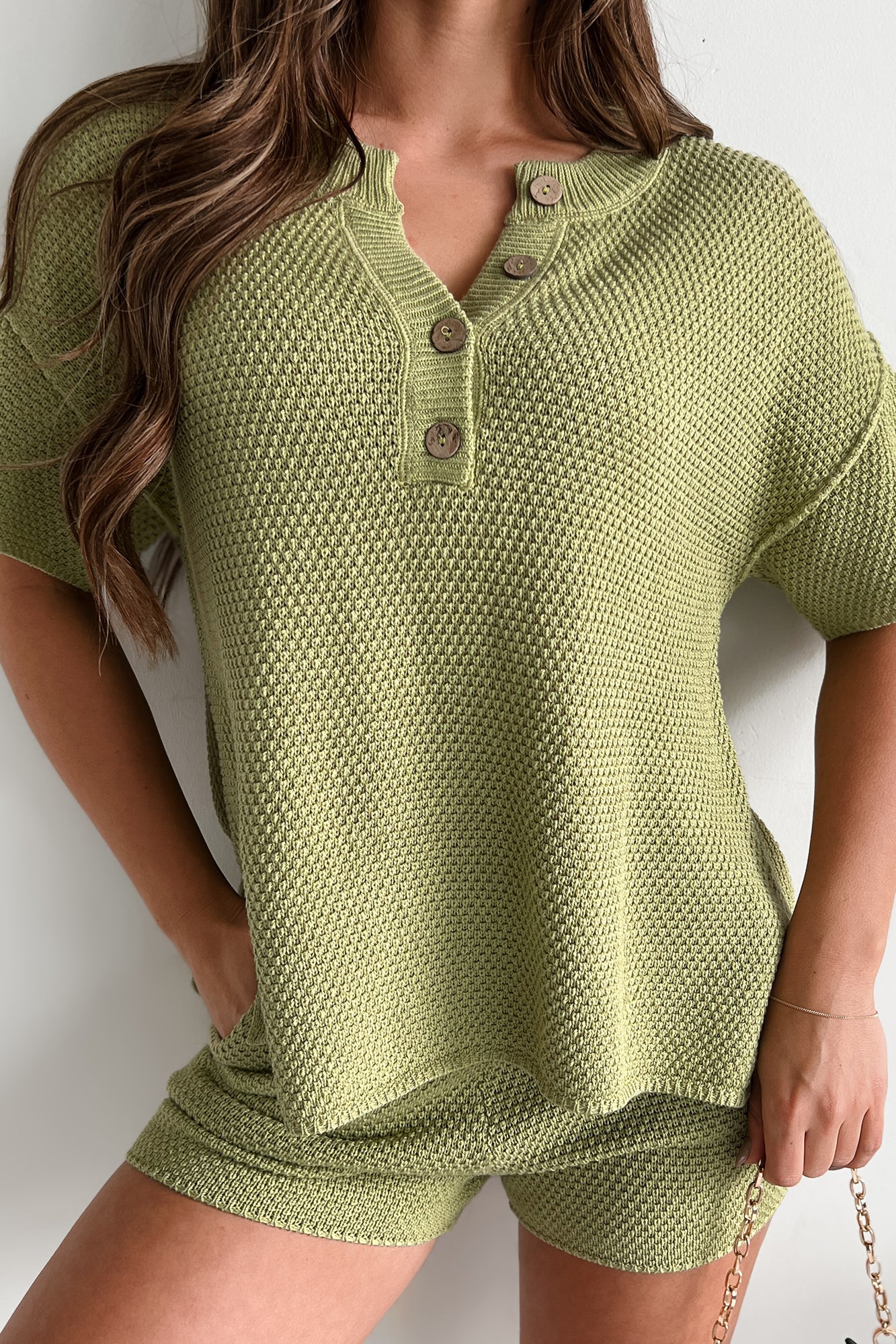 - Top: Henley Style, Short Sleeves, Side Slits, Relaxed/Oversized Fit