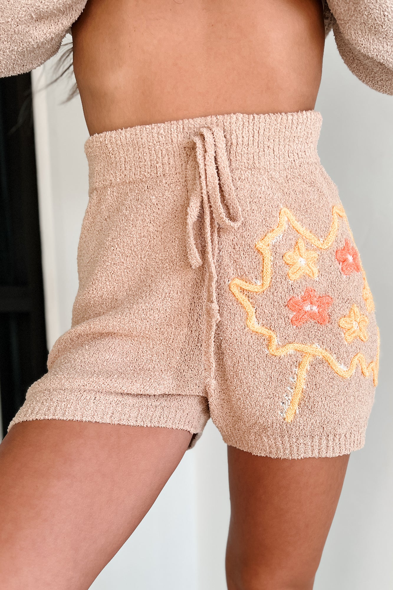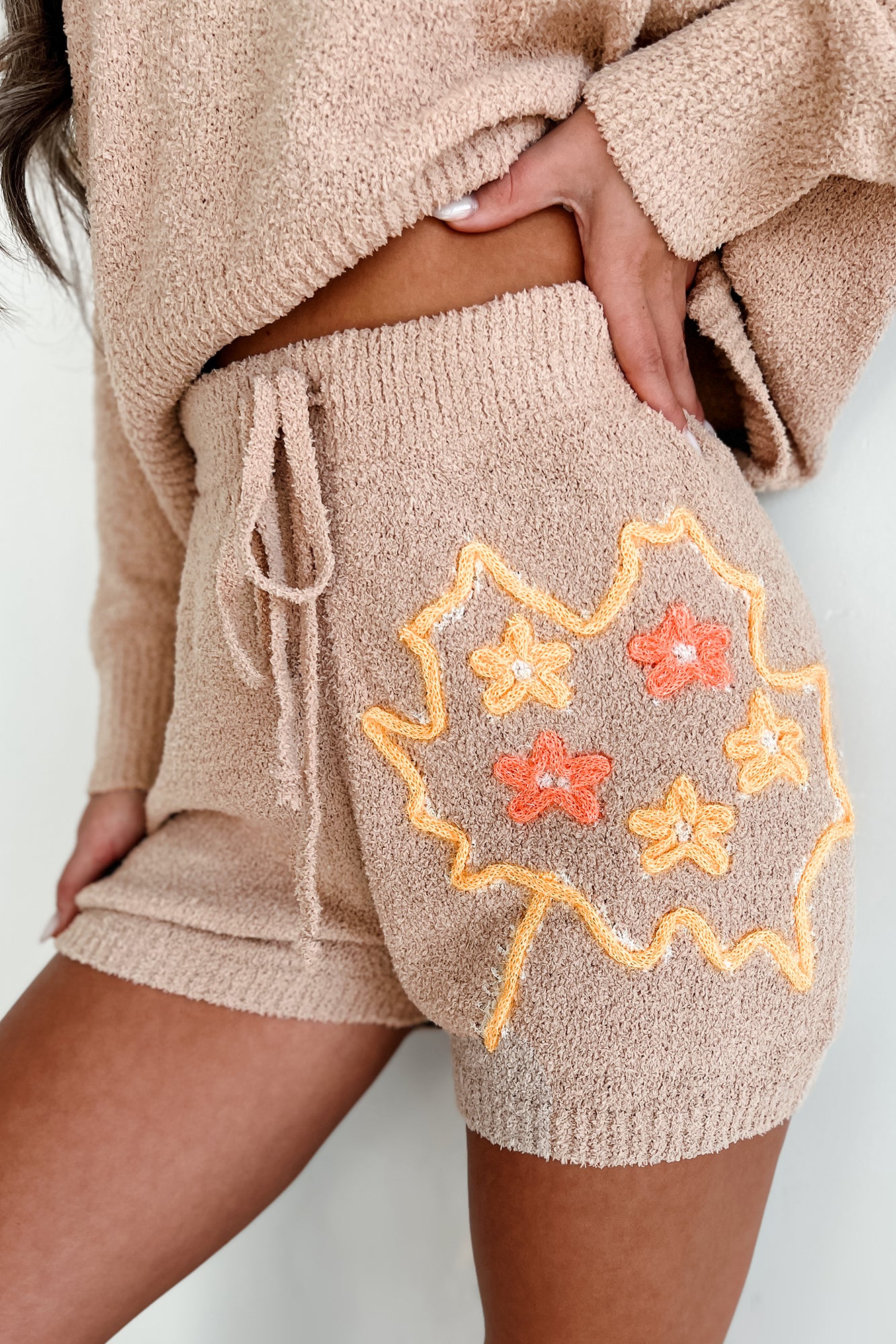 - Shorts: Fitted Shorts With An Elastic Waistband, Drawstring Tie & Yarn Leaf Graphic