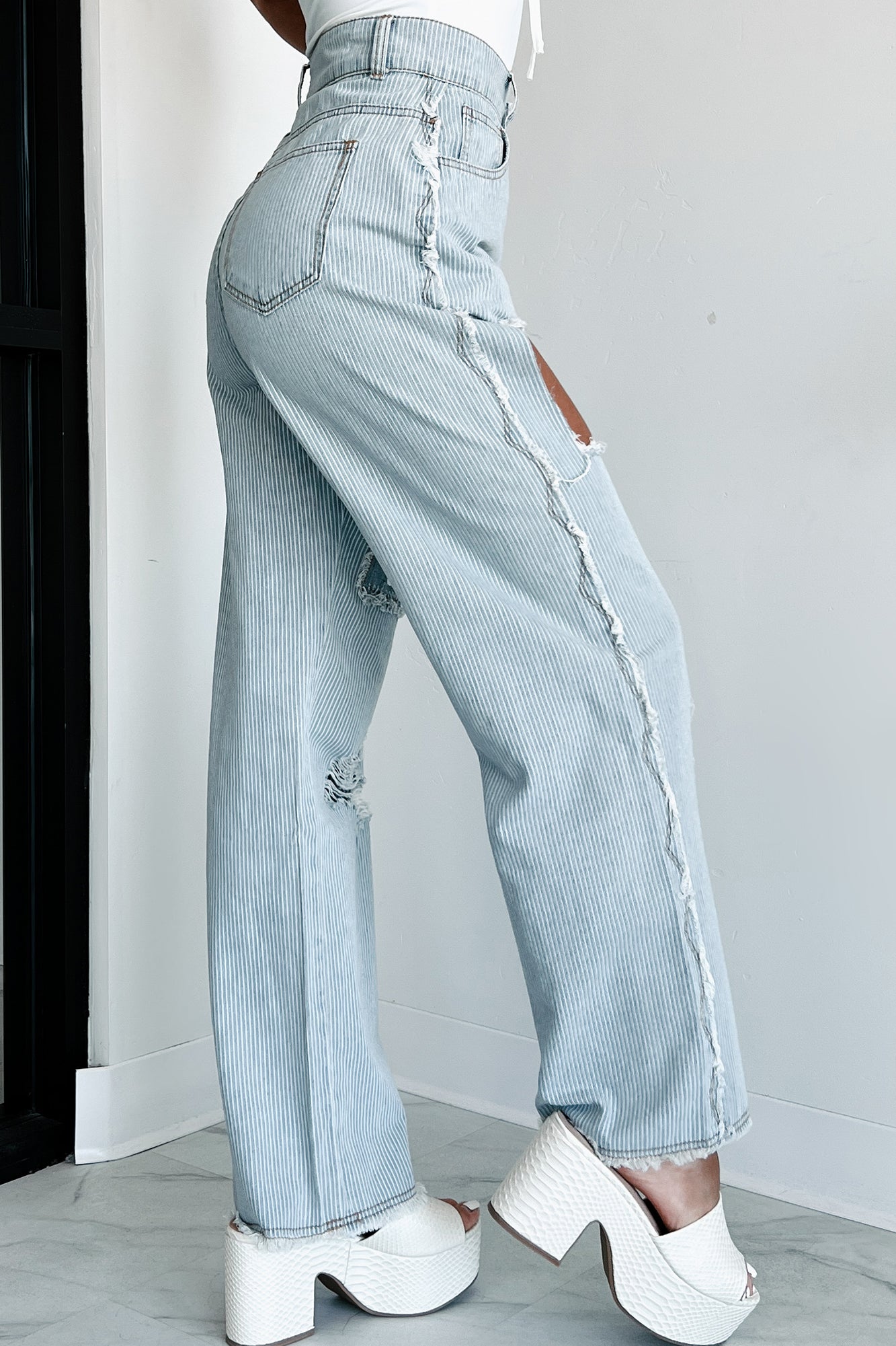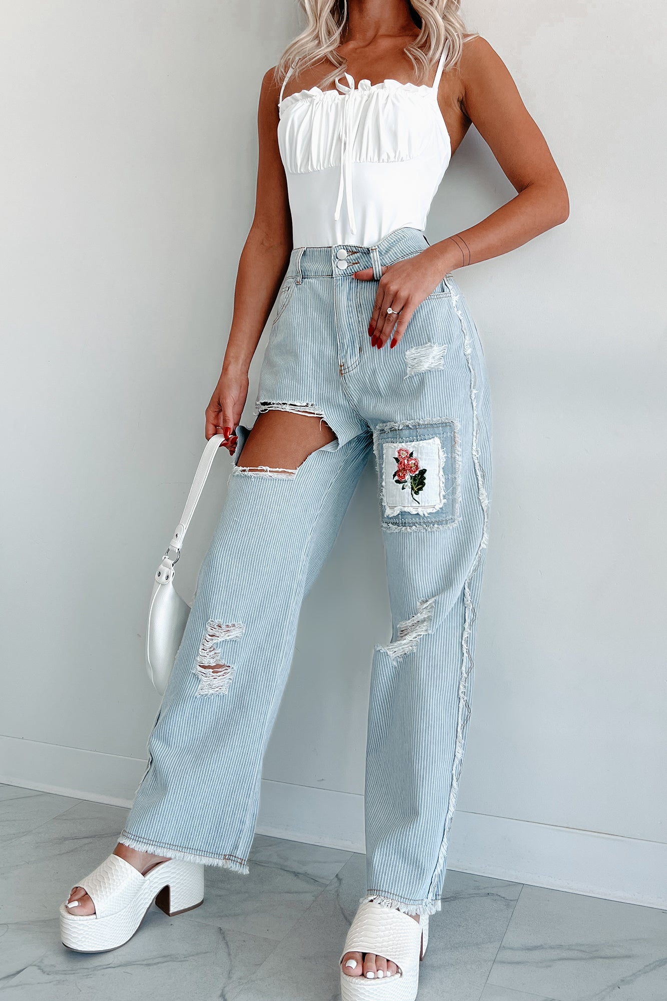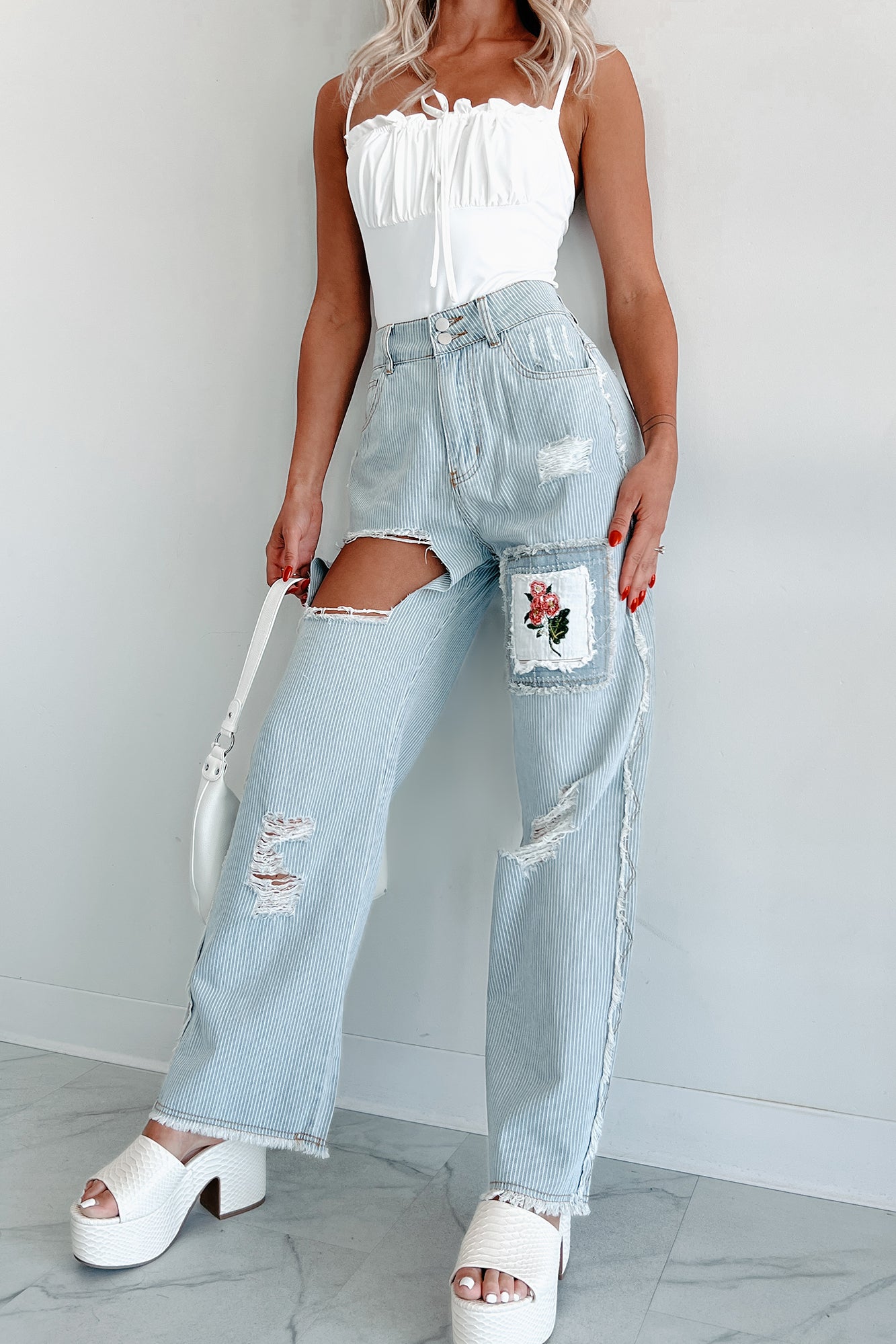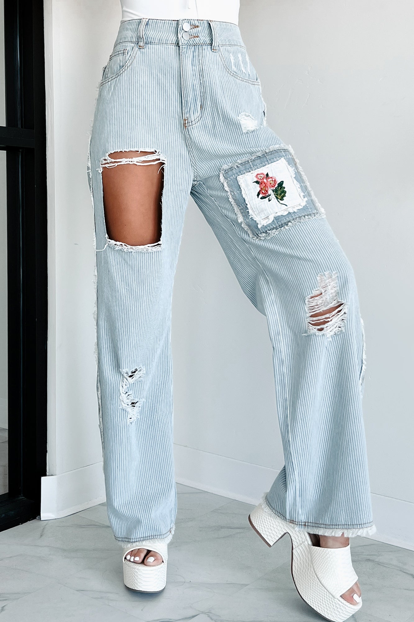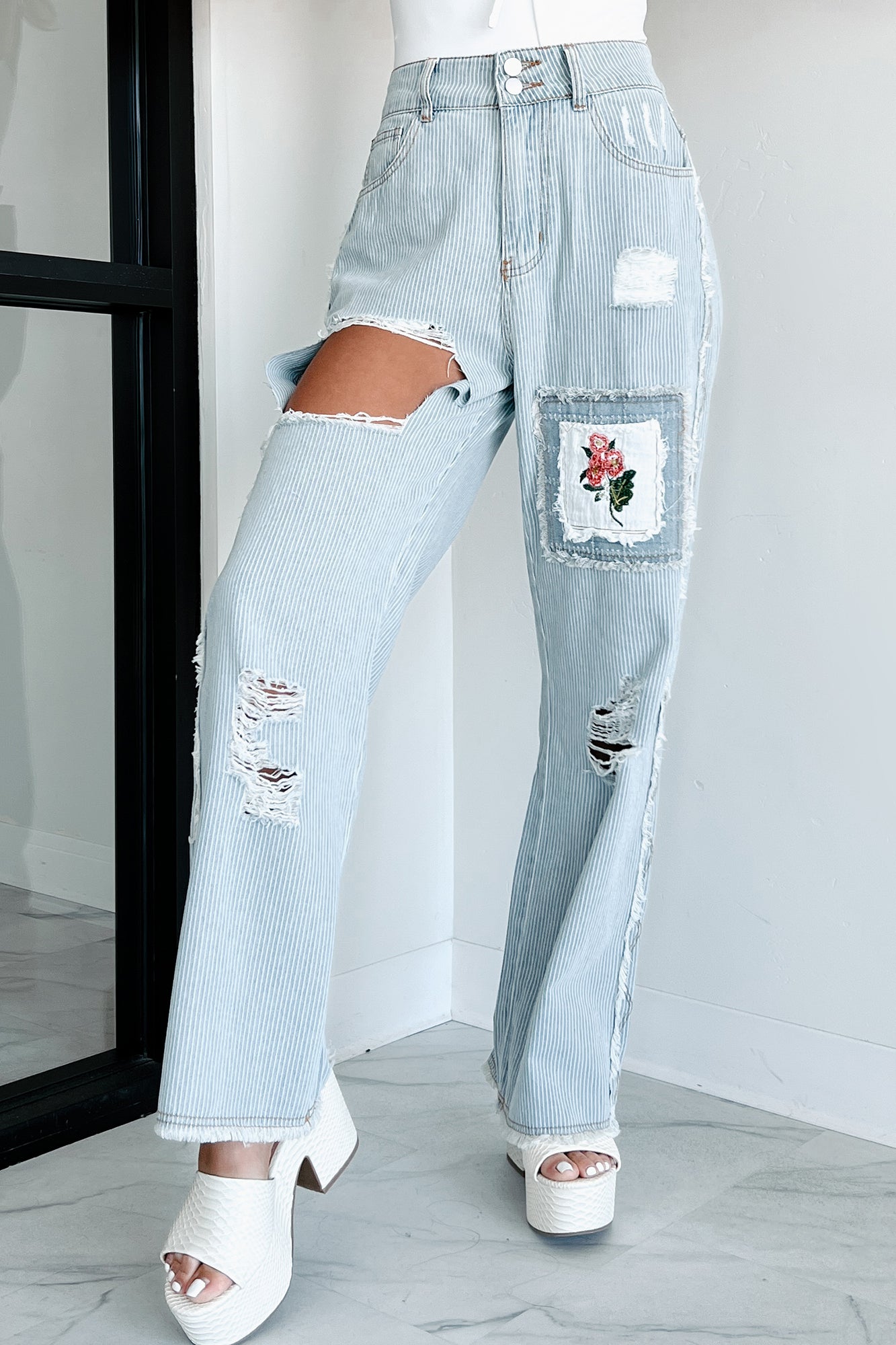 Catalina Distressed Embroidered POL Jeans (Stripe Denim)