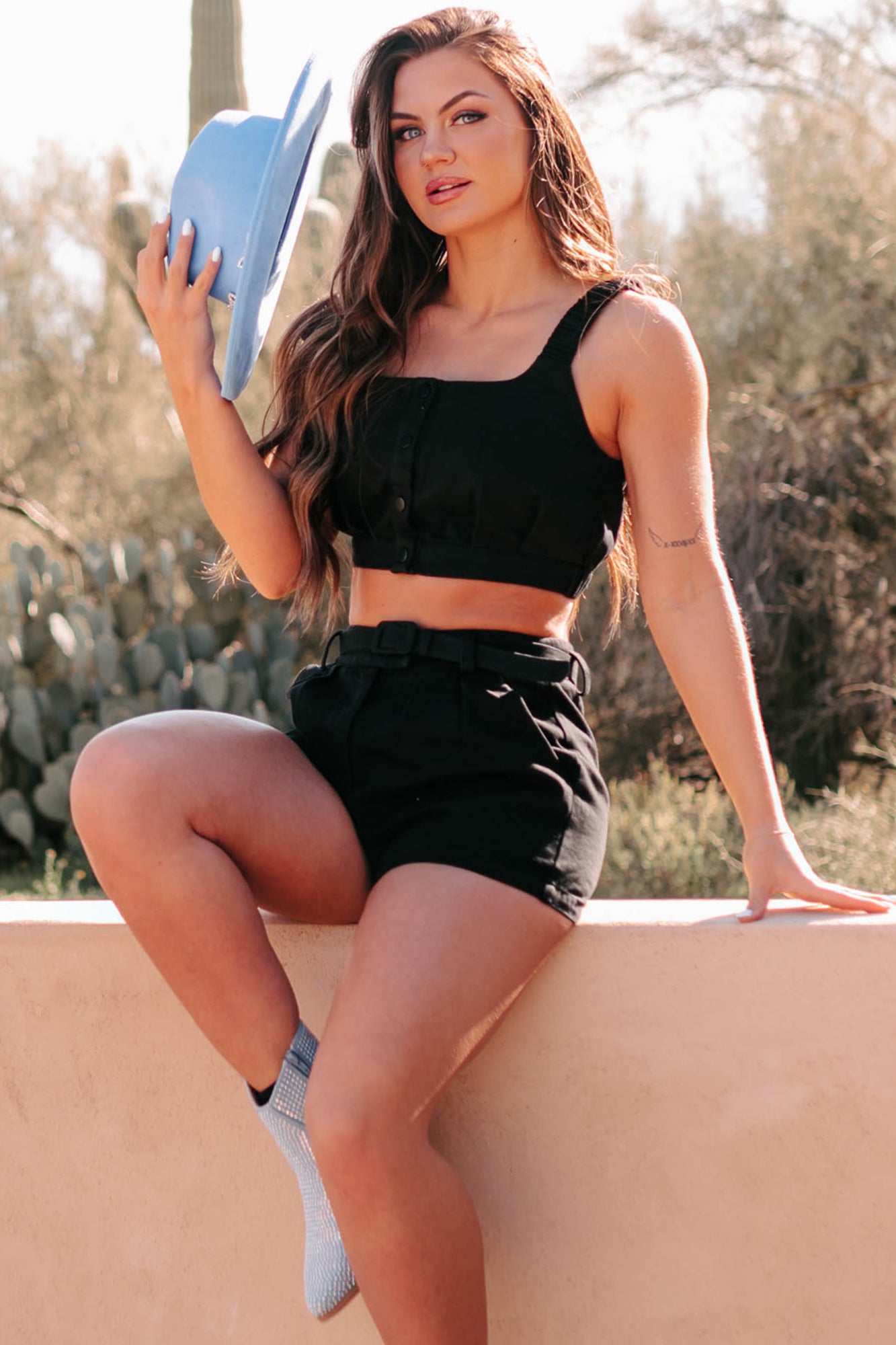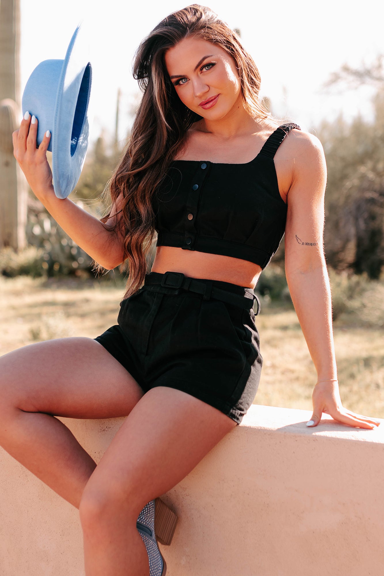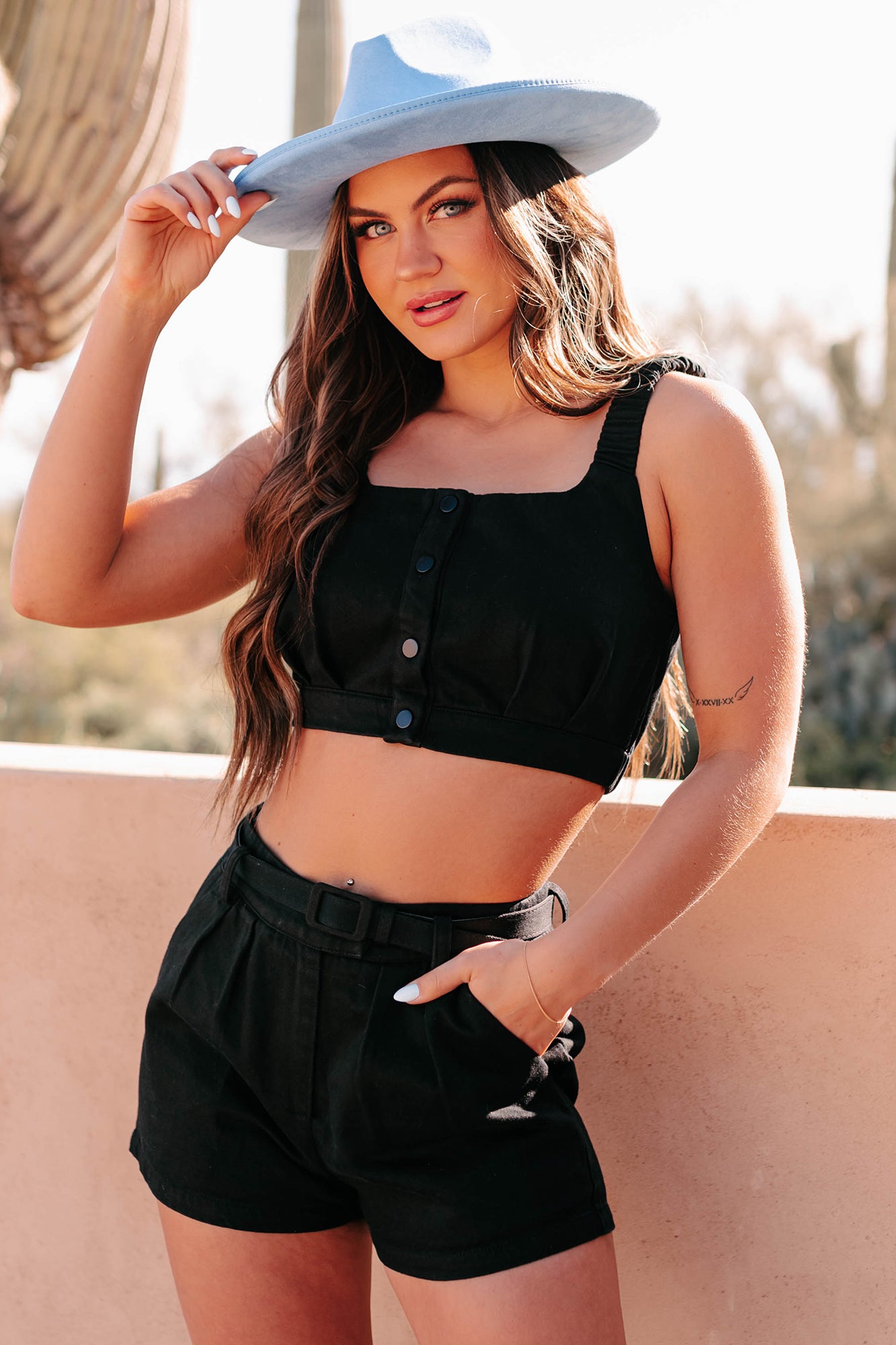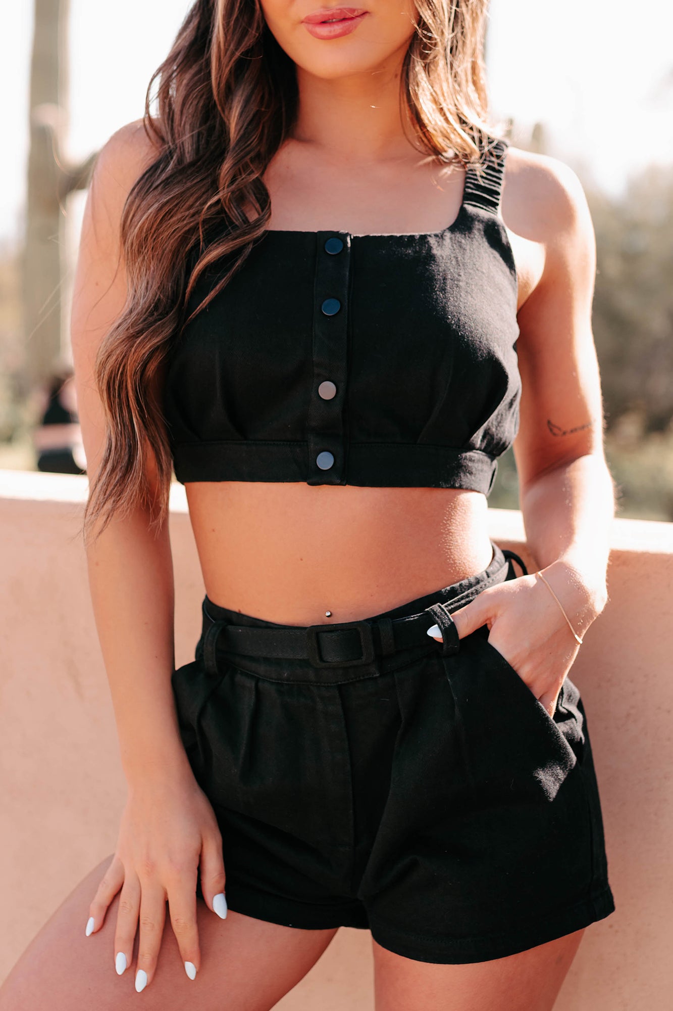Unbreakable Bonds Denim Crop Top & Shorts Set (Black)