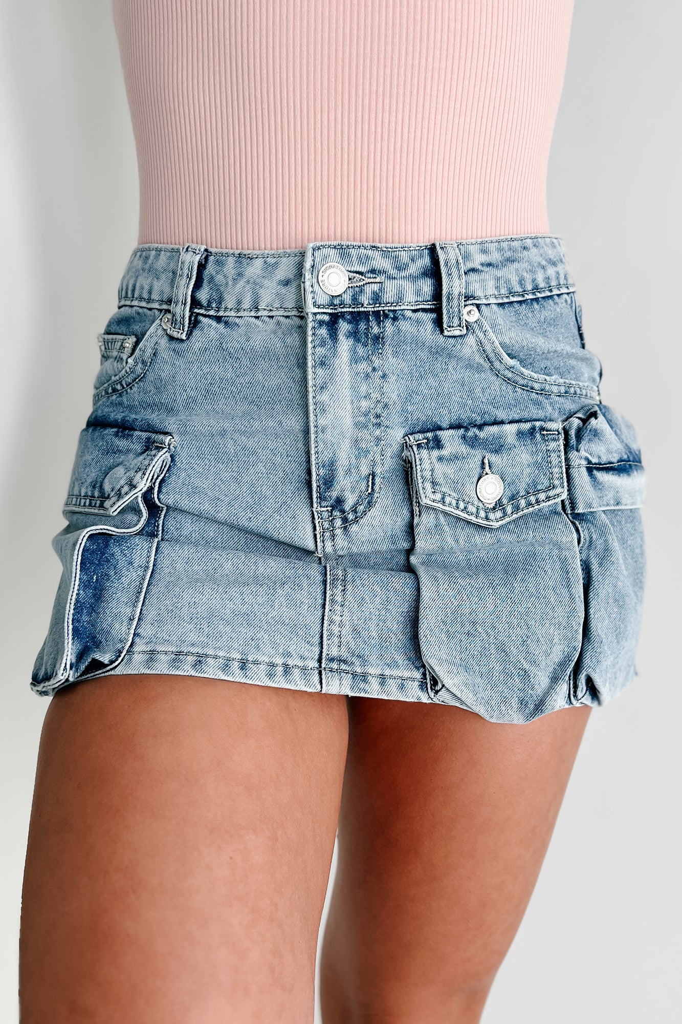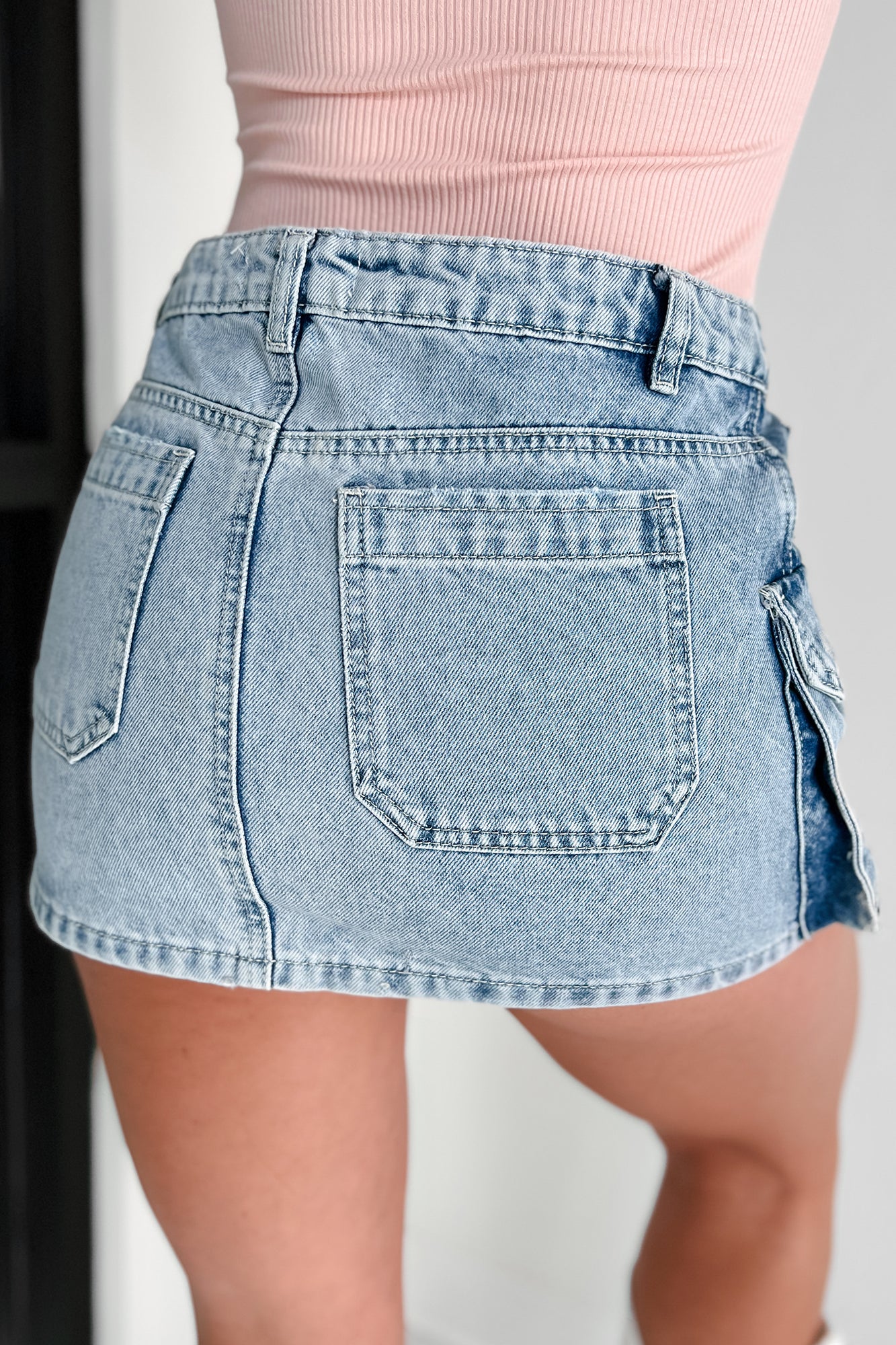 No Pep Talk Needed Denim Cargo Mini Skirt (Light Denim)