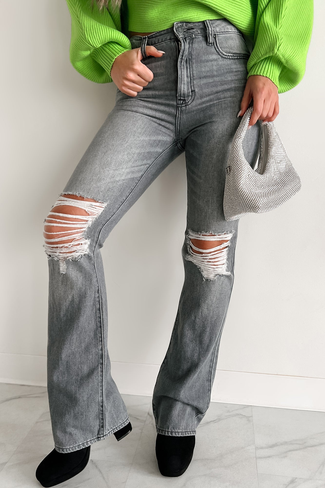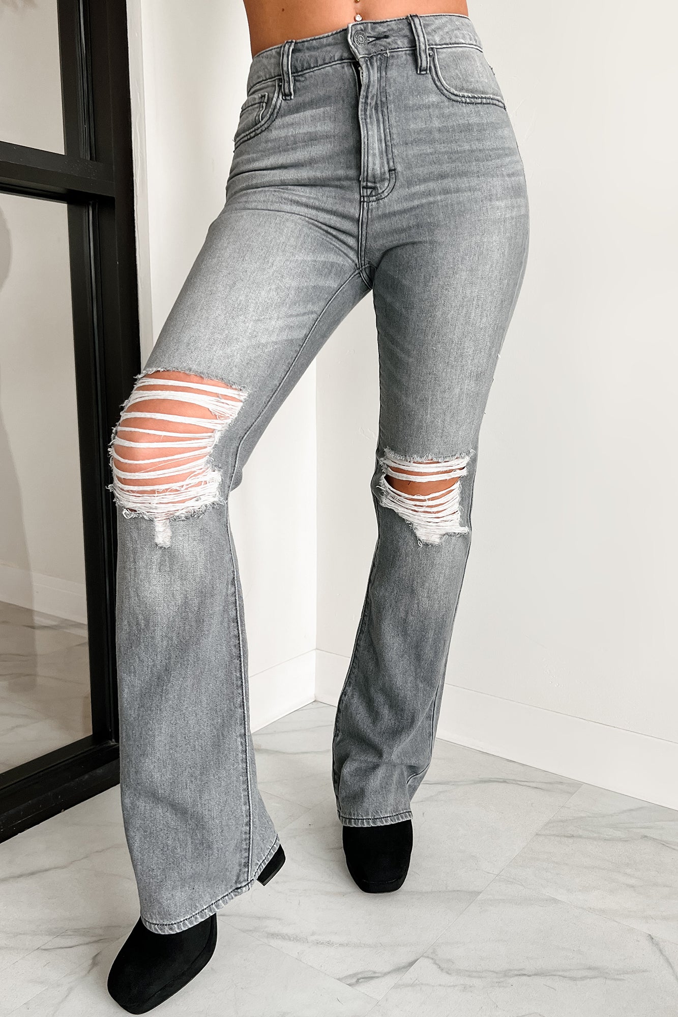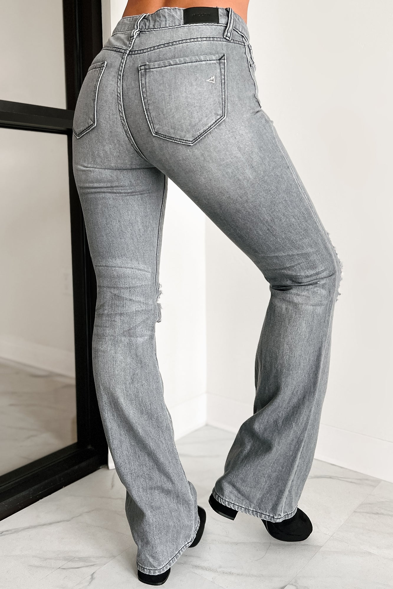 Belmont High Rise Distressed Flare Jeans (Grey)
