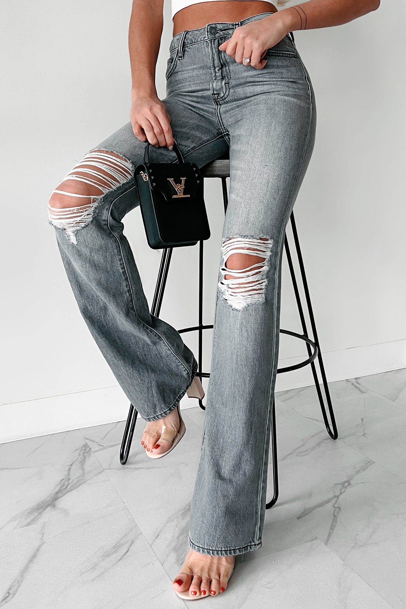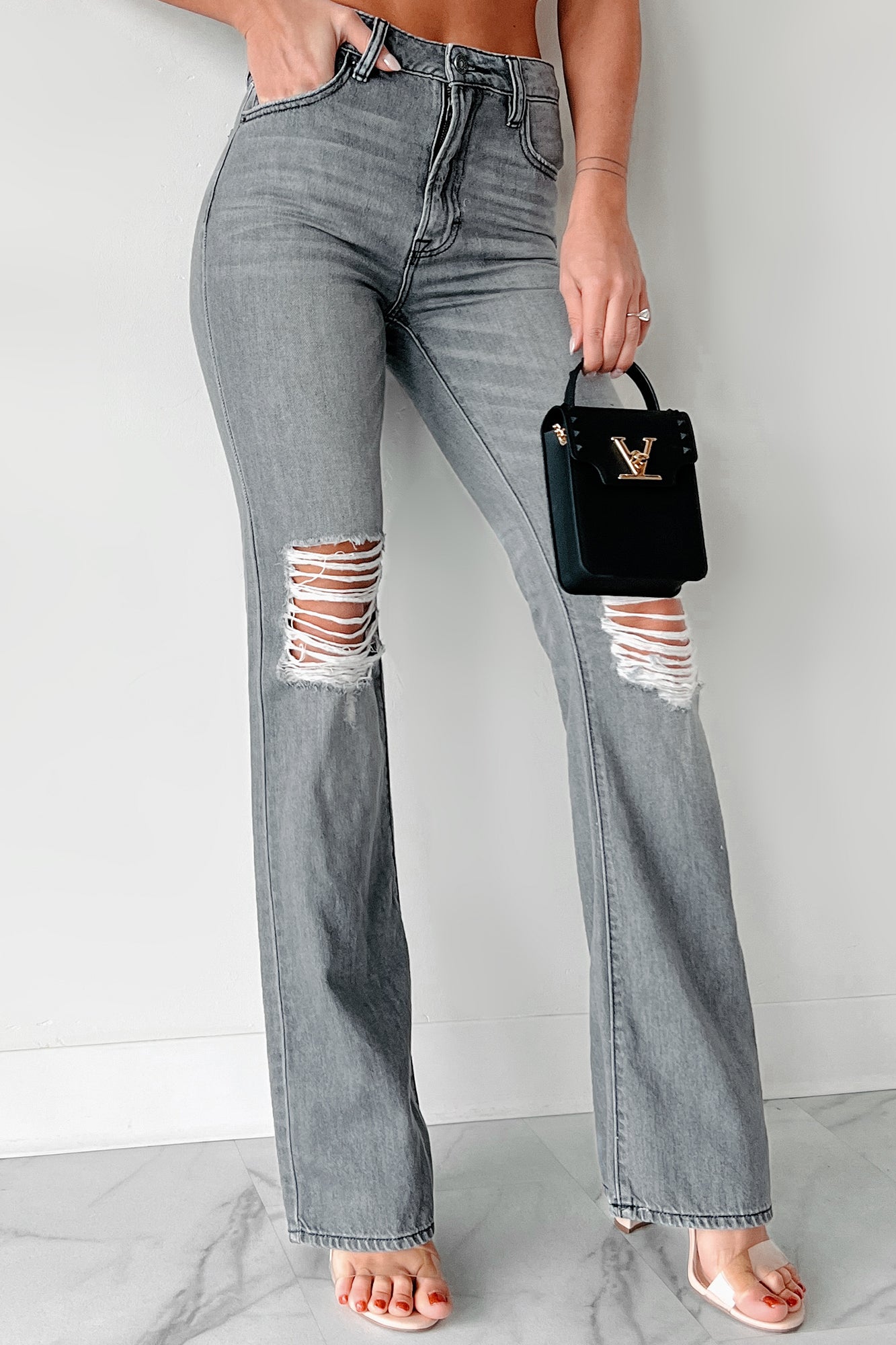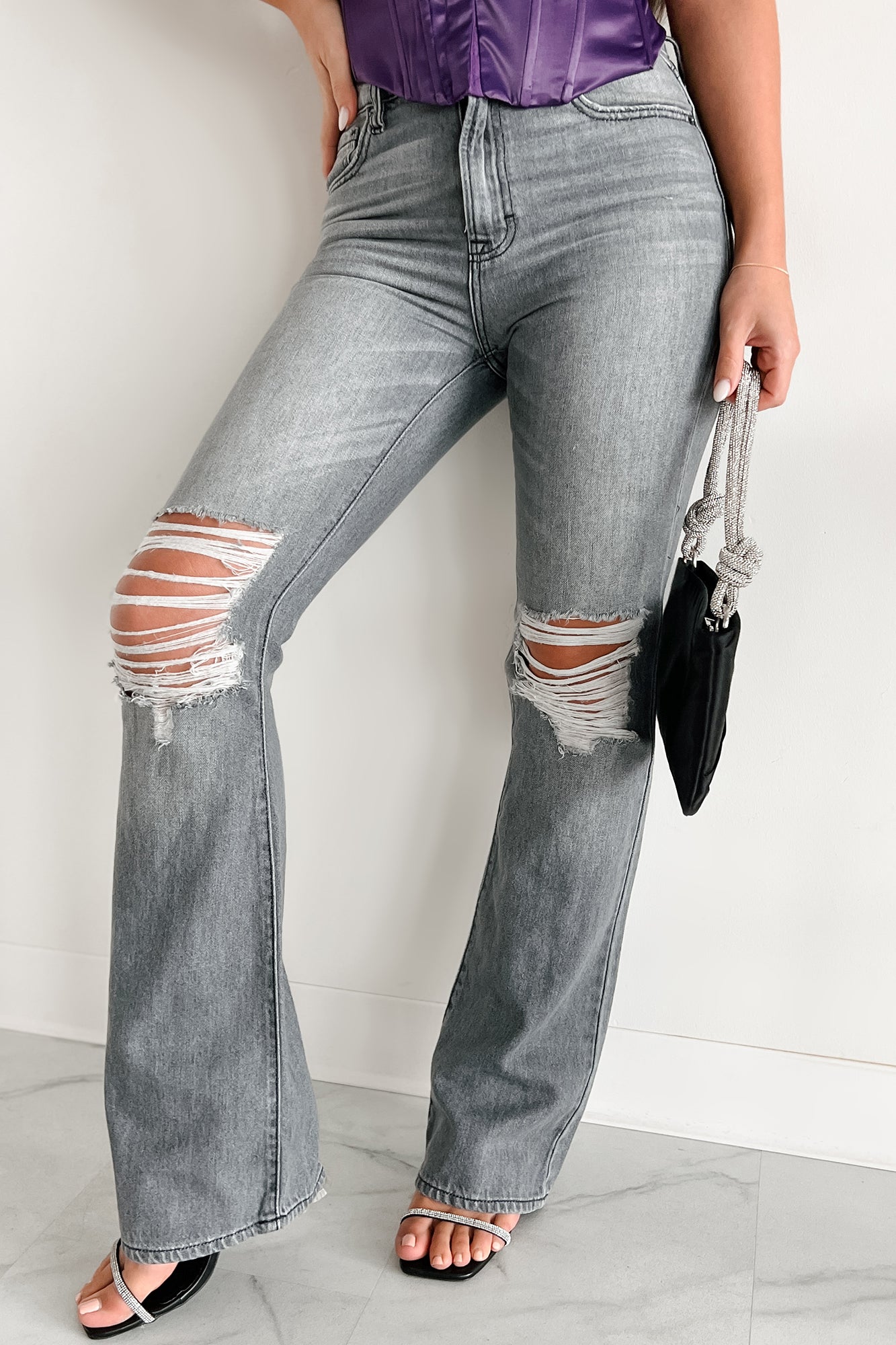 Belmont High Rise Distressed Flare Jeans (Grey)