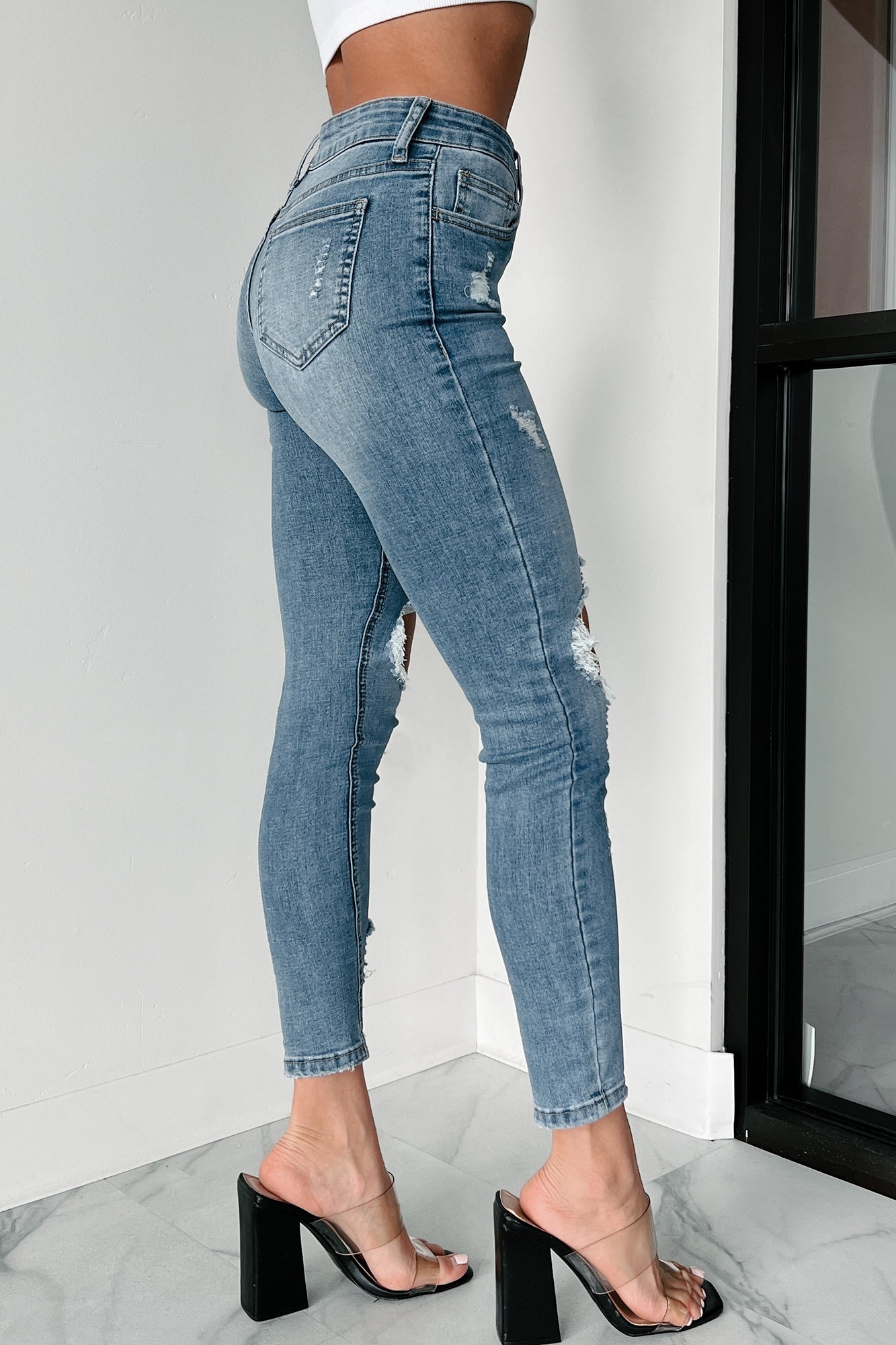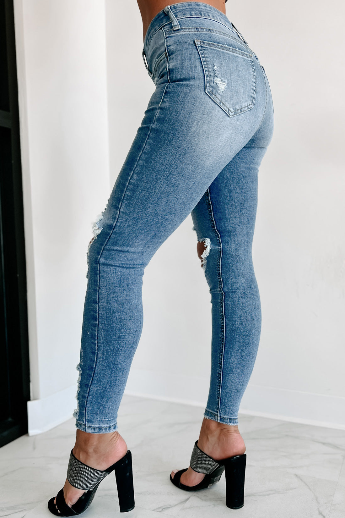 Denver Mid-Rise Distressed Skinny Jeans (Medium Denim)
