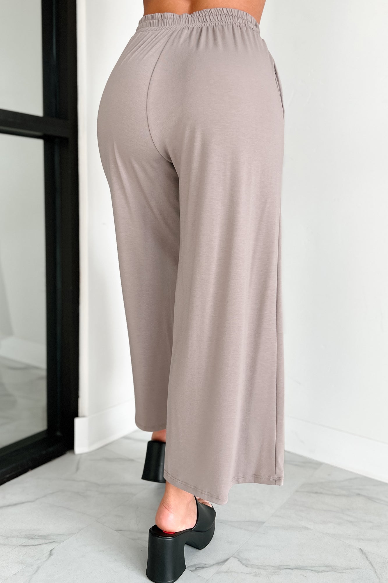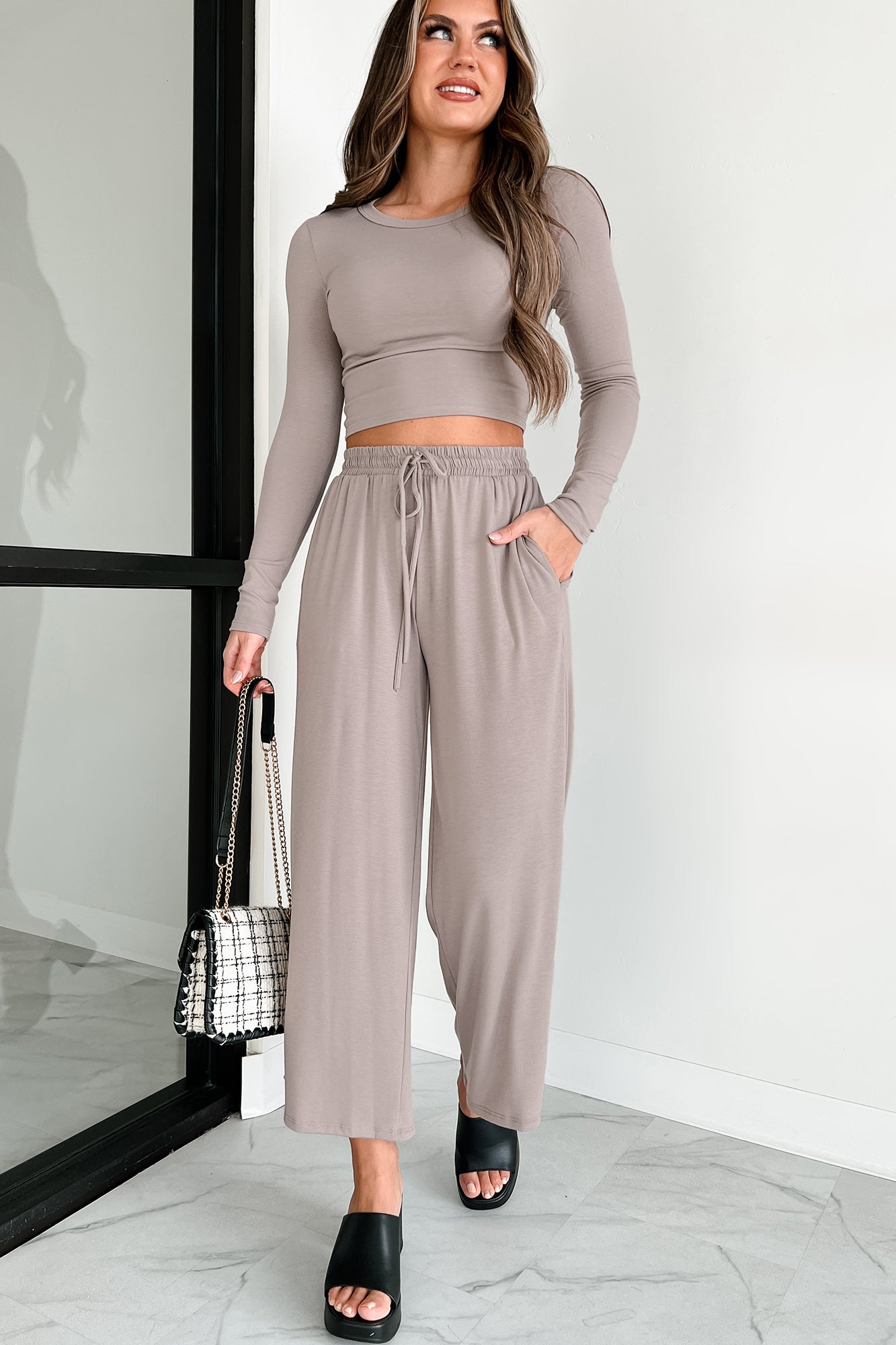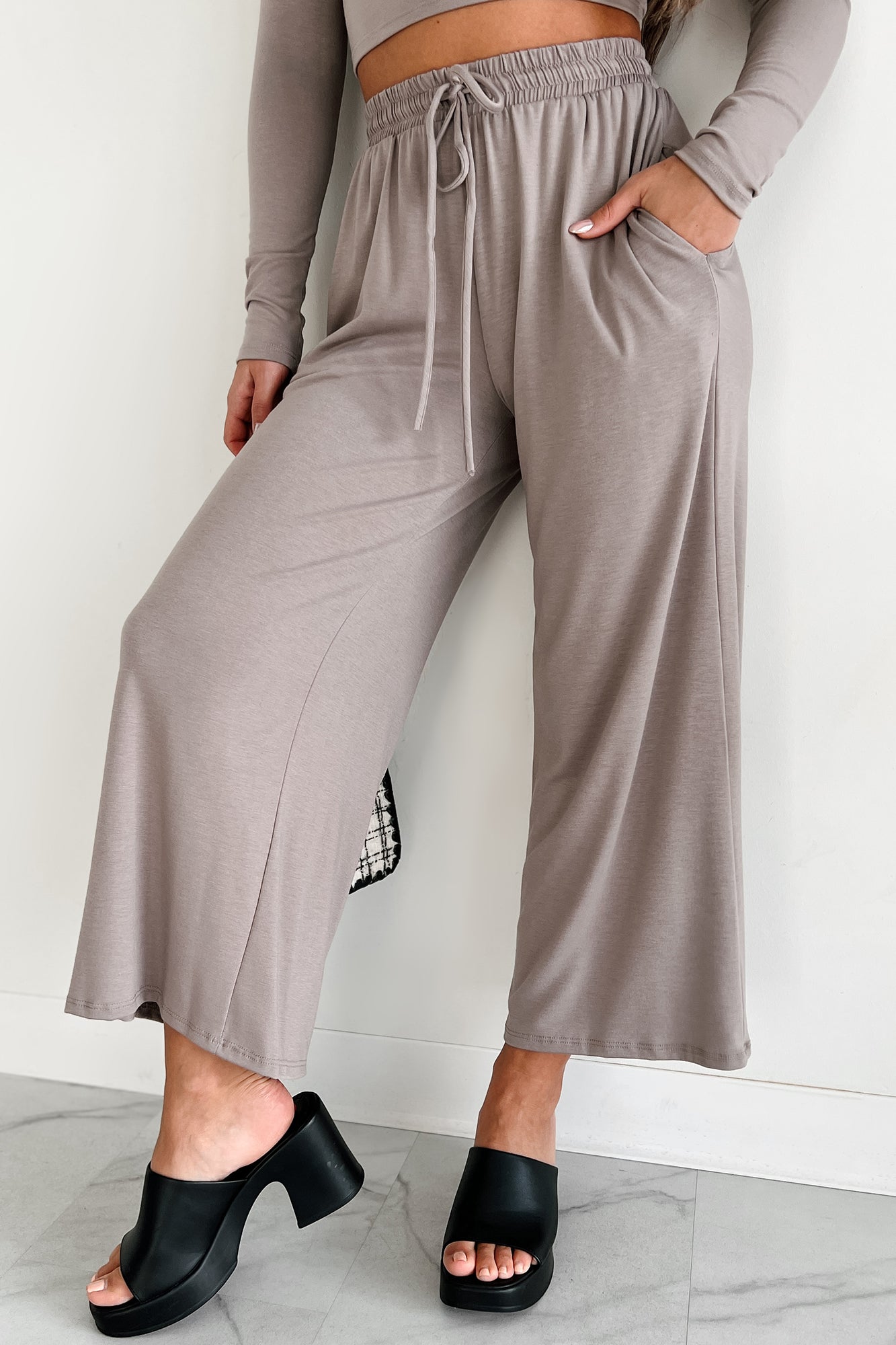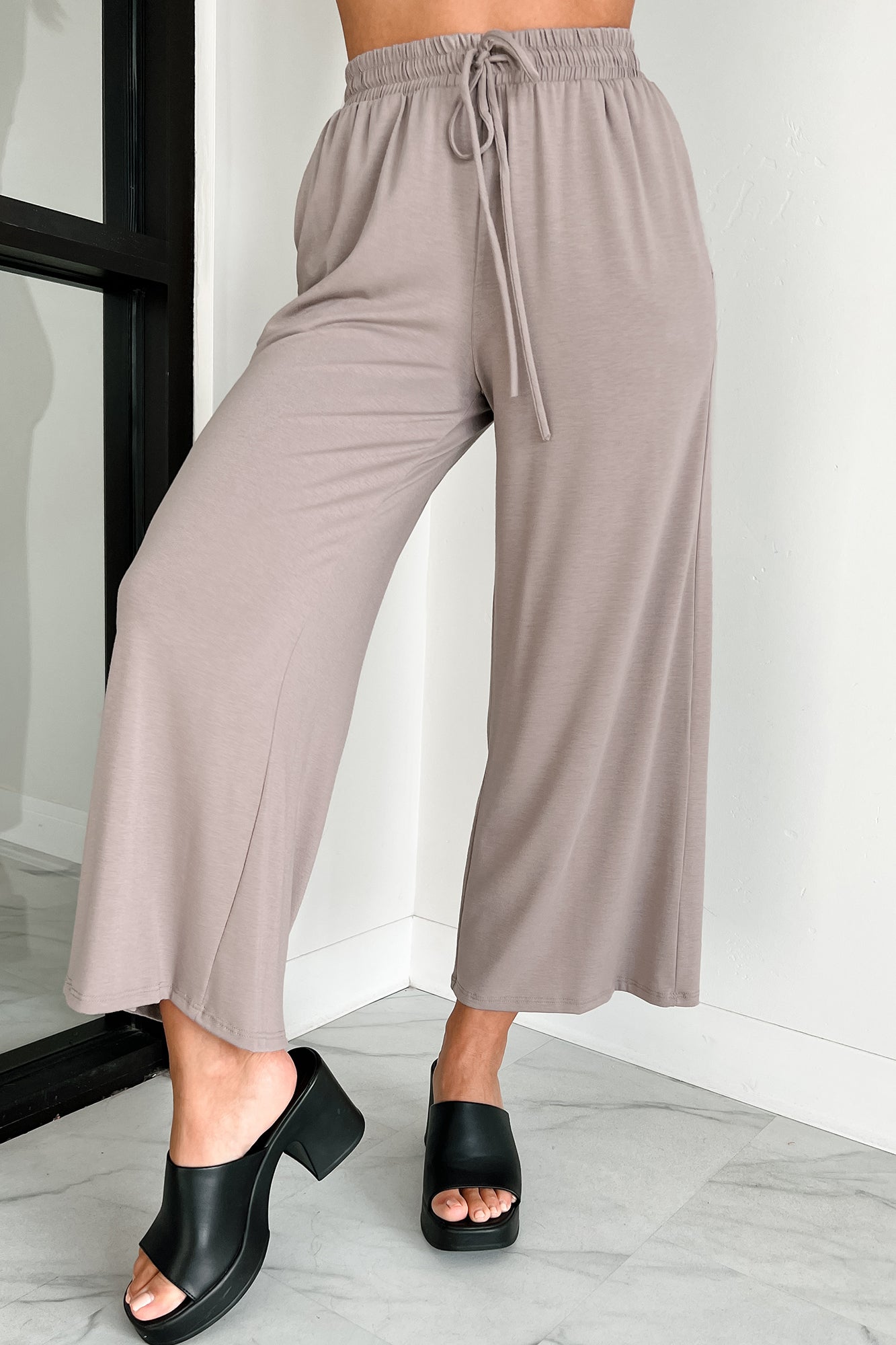 Lazy Reputation Drawstring Waist Lounge Pants (Taupe)