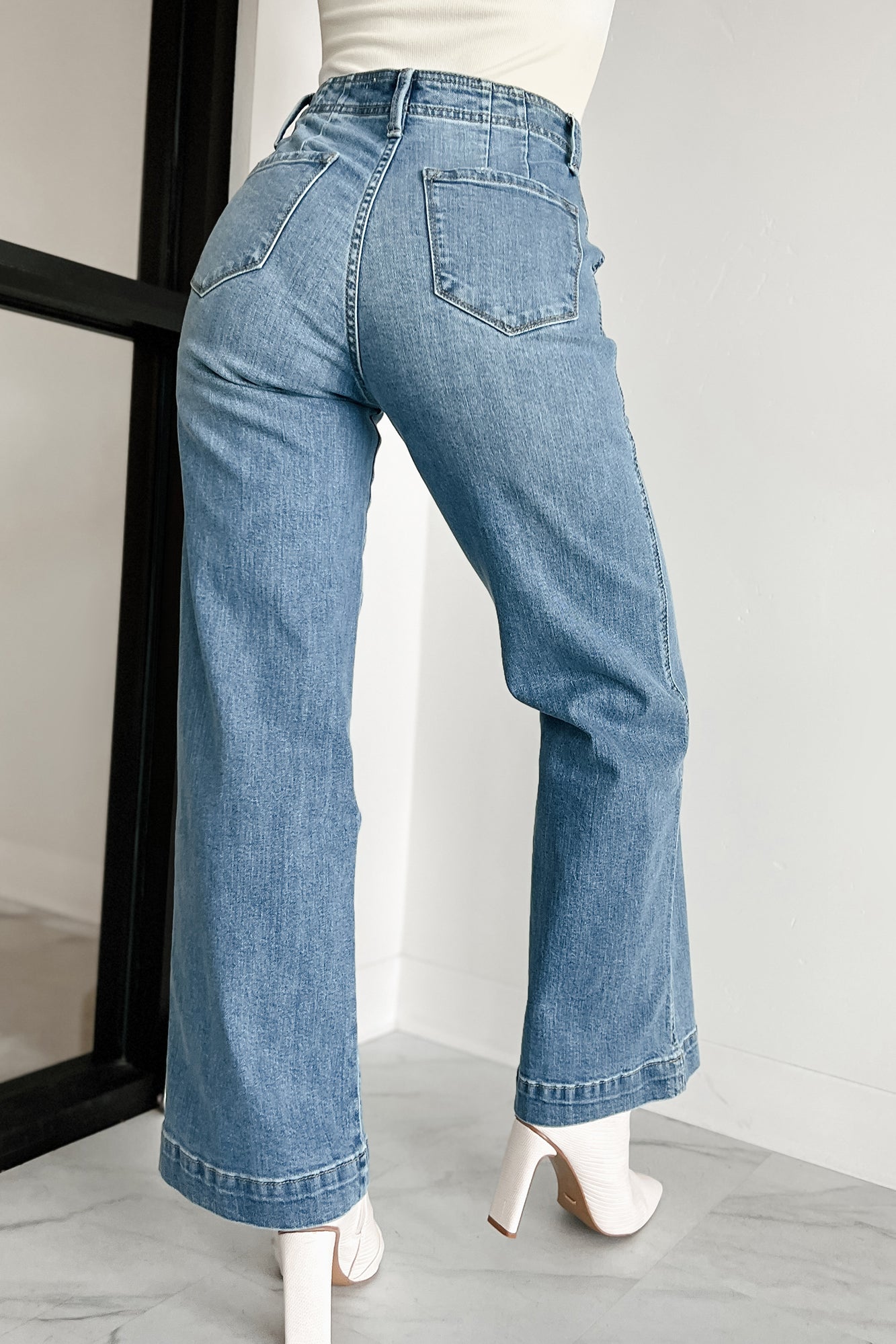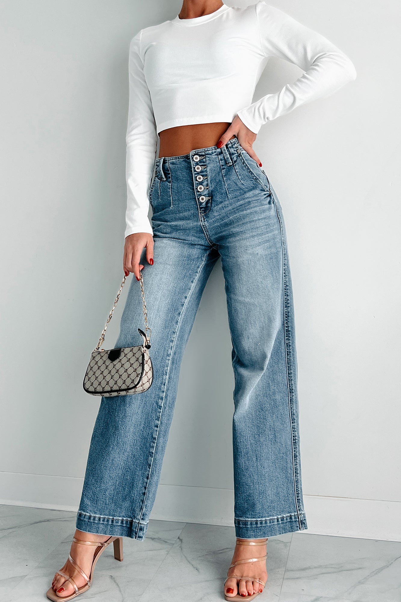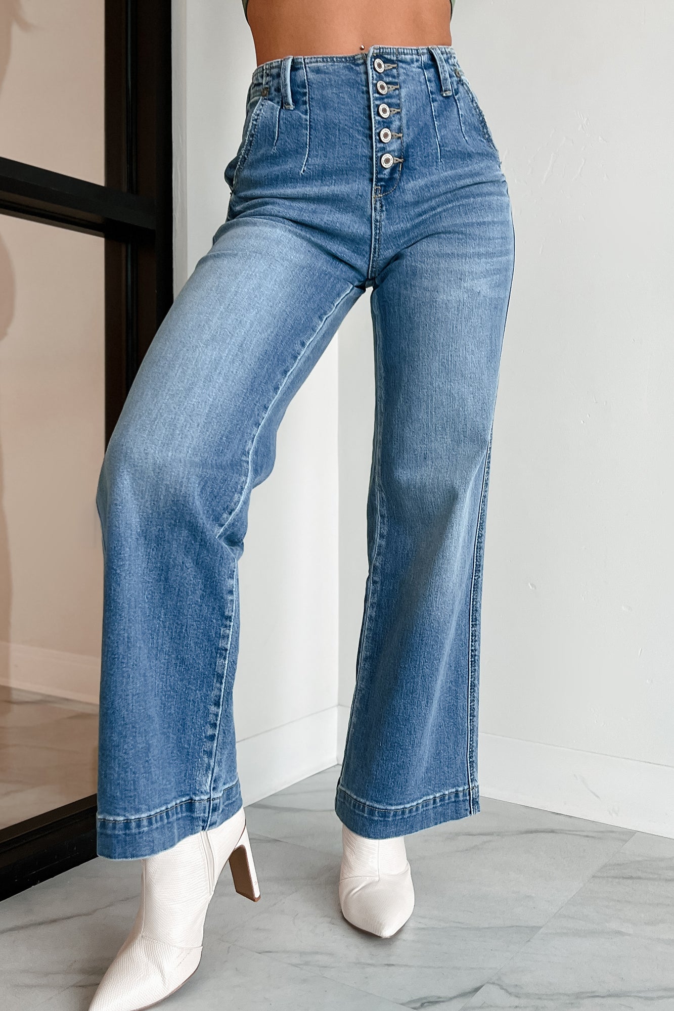 Marie High Rise Button-Fly Wide Leg Kancan Jeans (Medium)