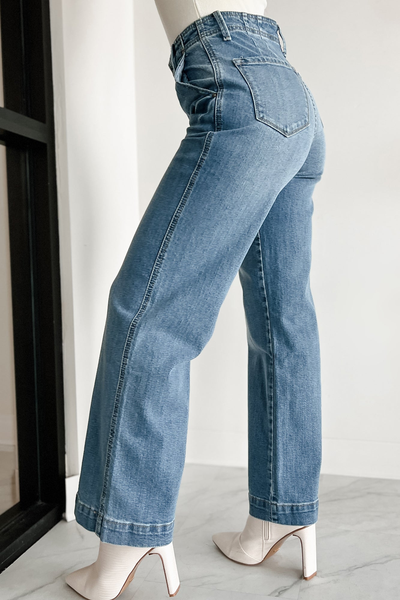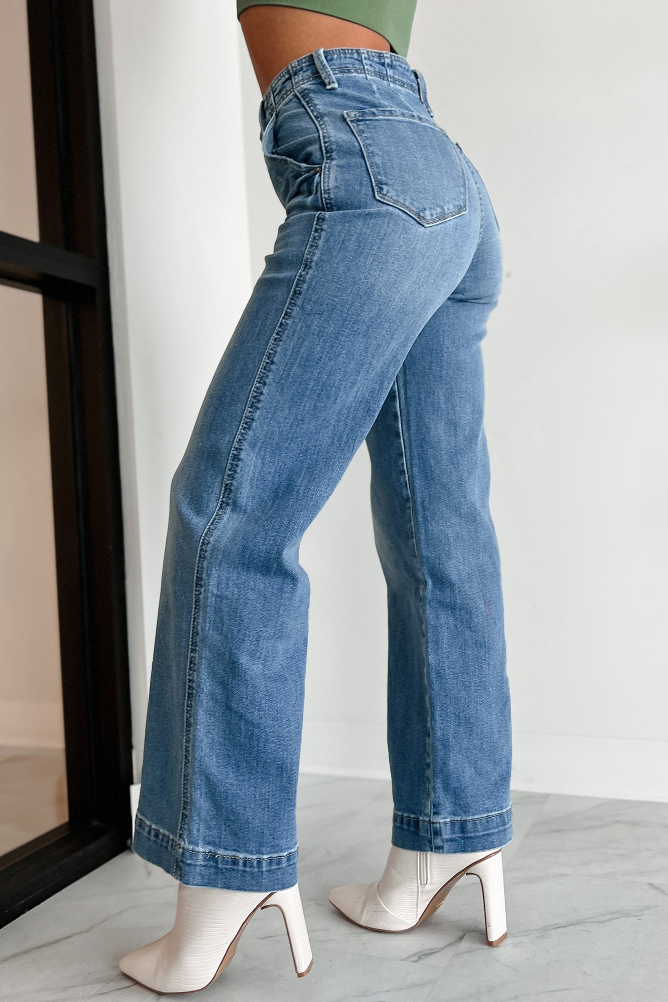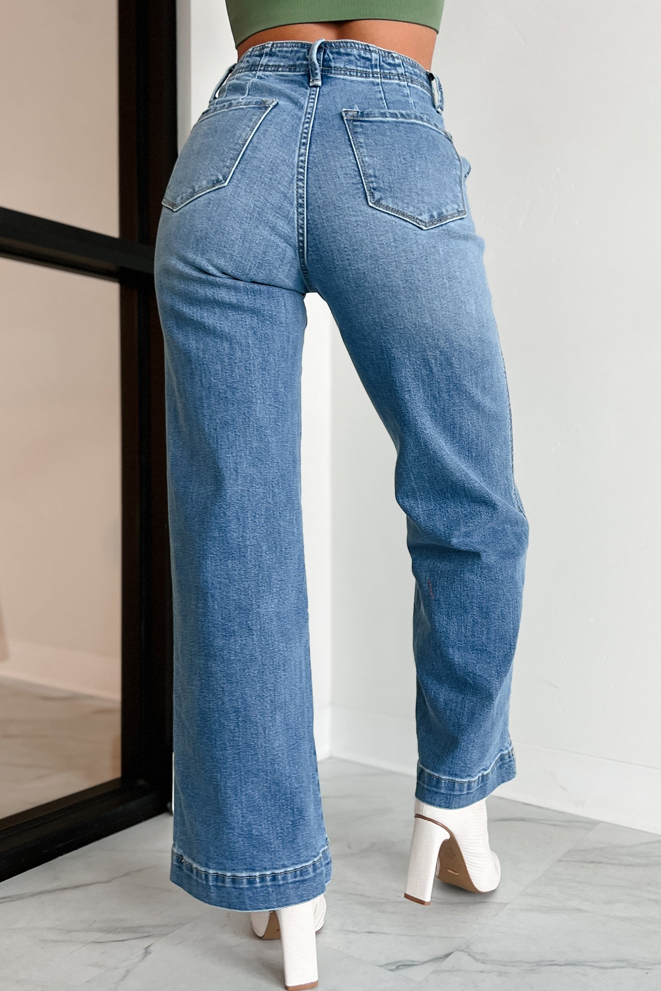 Marie High Rise Button-Fly Wide Leg Kancan Jeans (Medium)