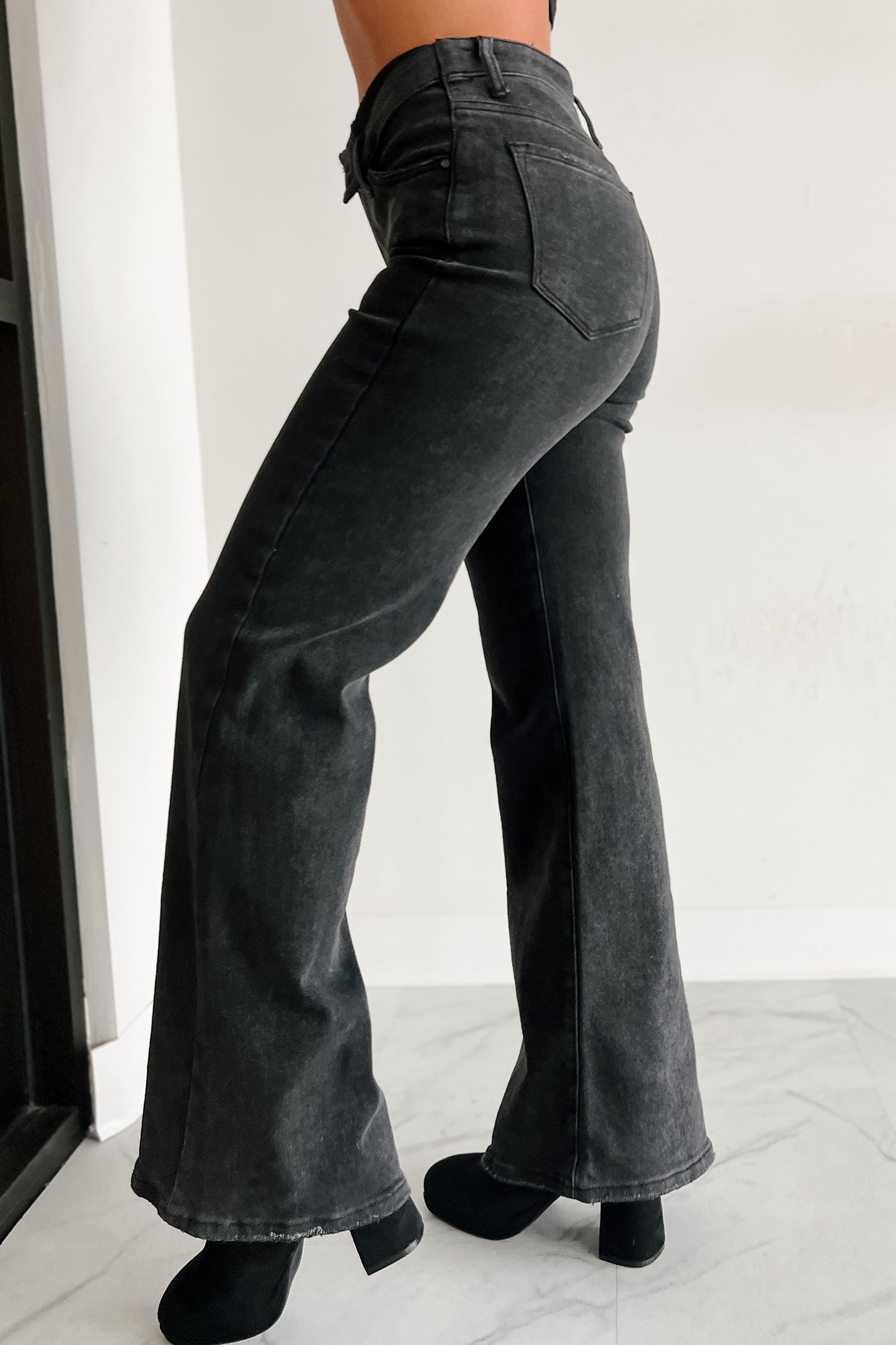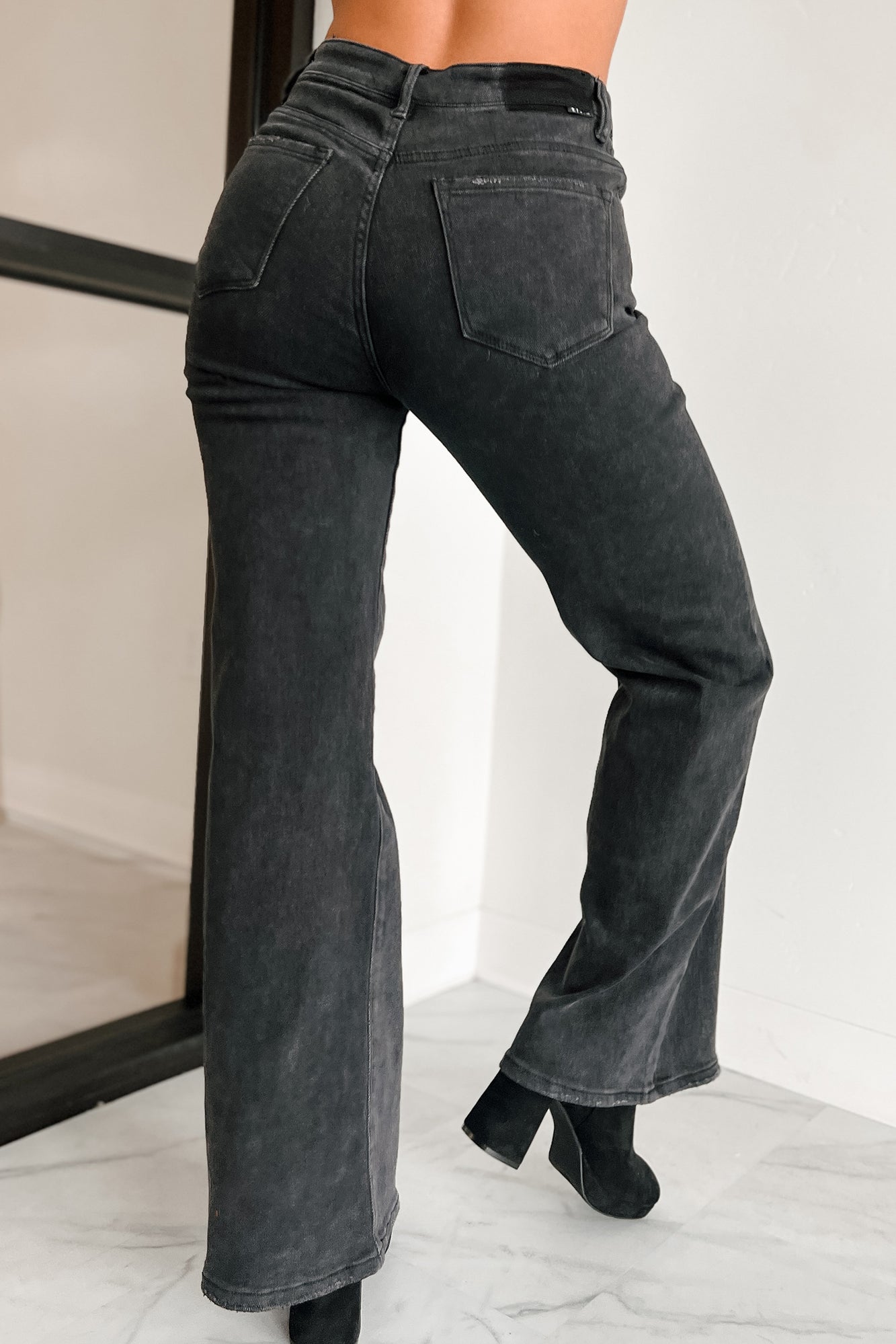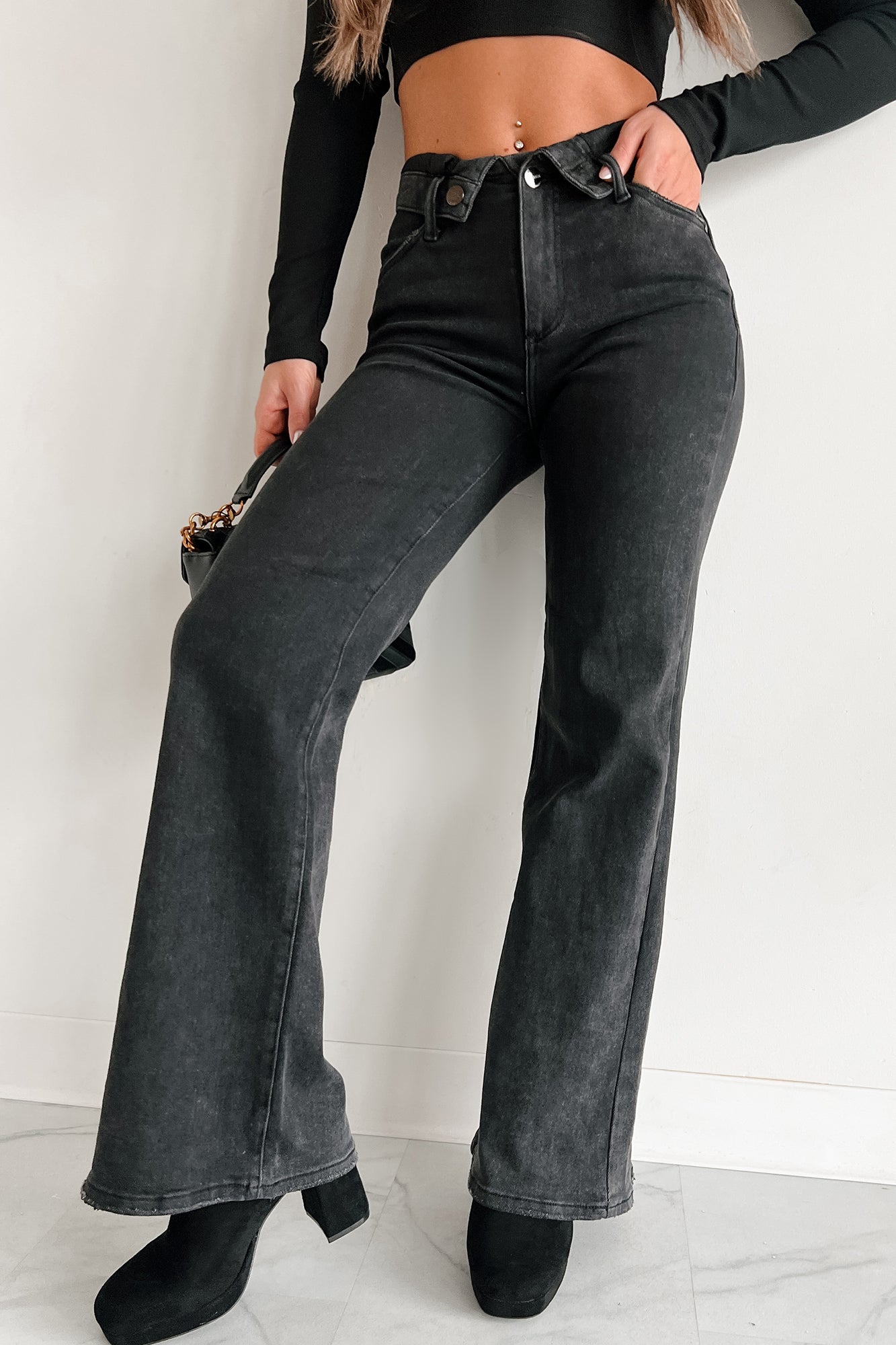 Otto Mid-Rise Folded Waist Risen Wide Leg Jeans (Black)