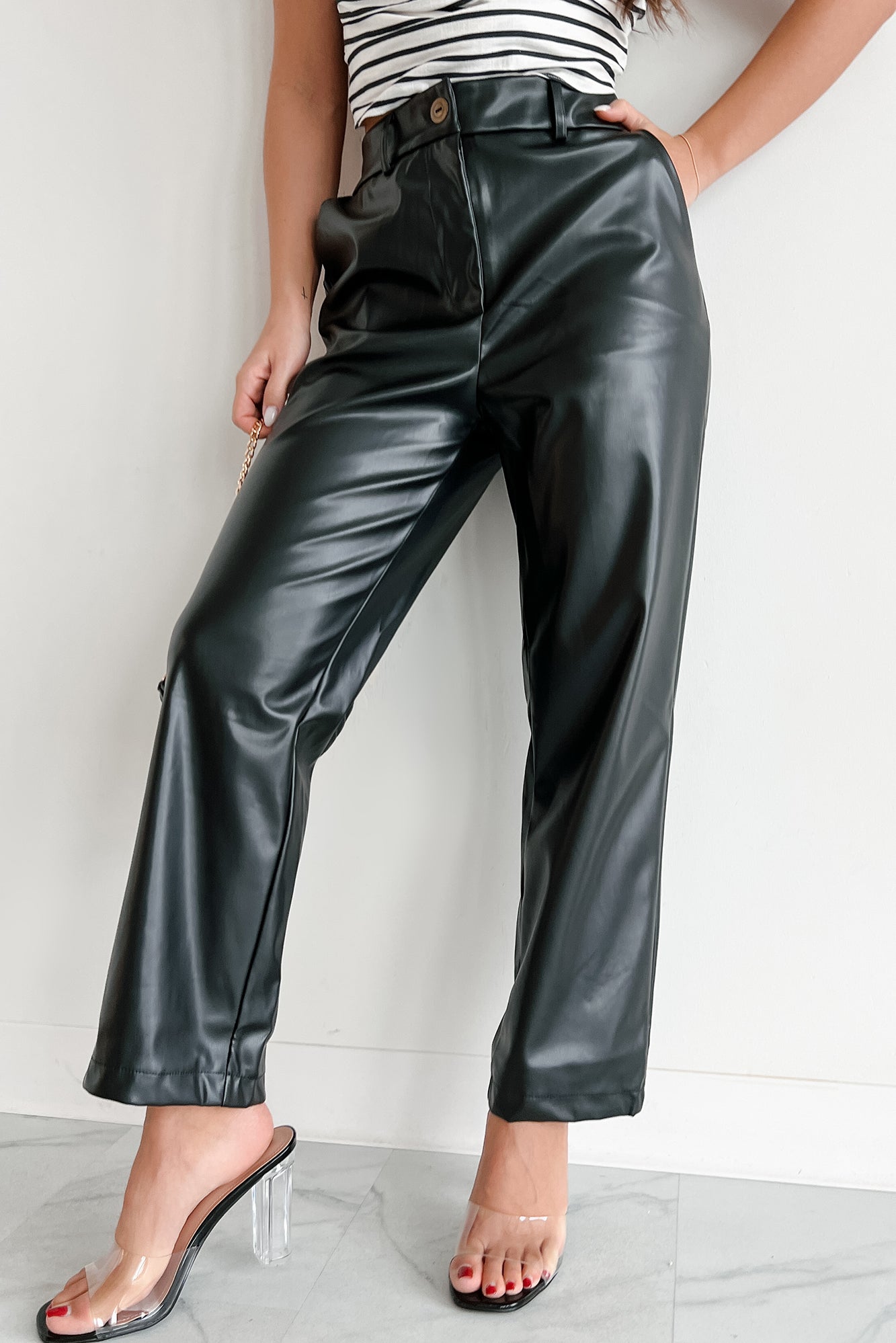 CEO Moves Straight Leg Faux Leather Pants (Black)