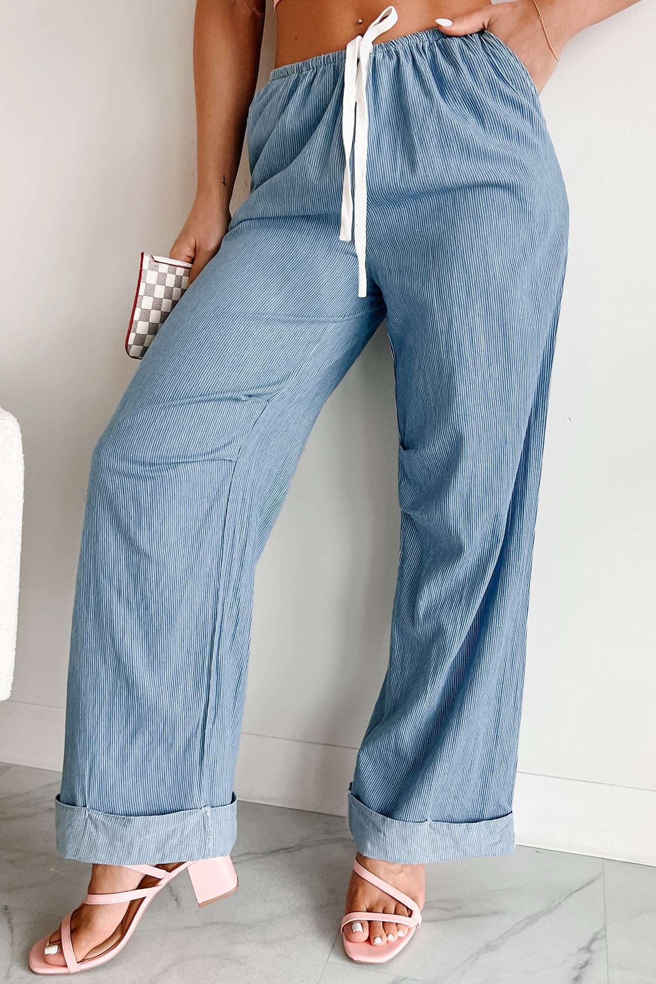 Dinah Cuffed Hem Wide Leg Striped Pants (Light Denim Stripe)