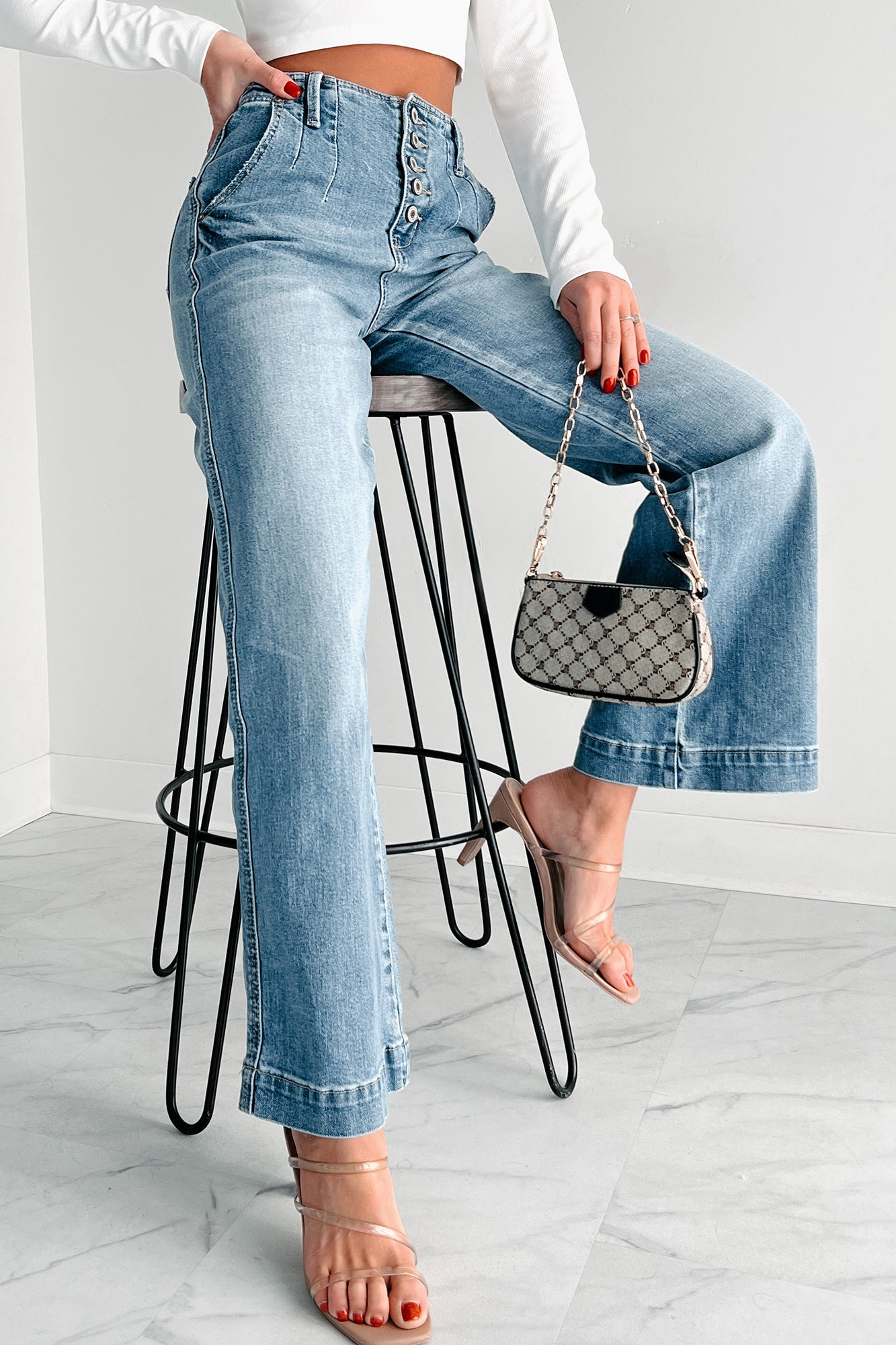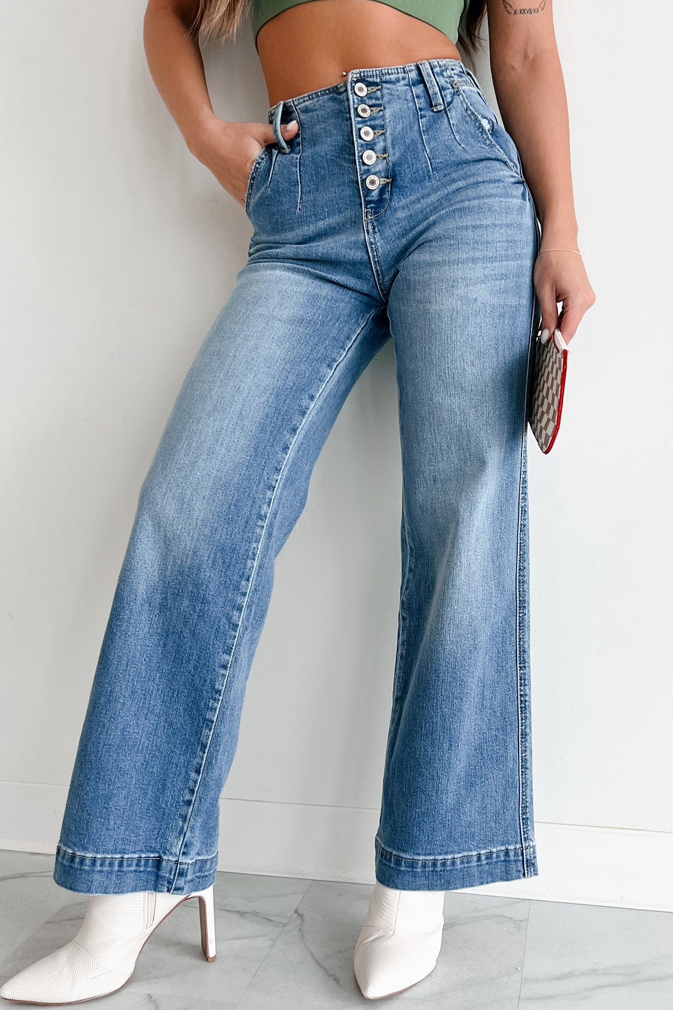 Marie High Rise Button-Fly Wide Leg Kancan Jeans (Medium)