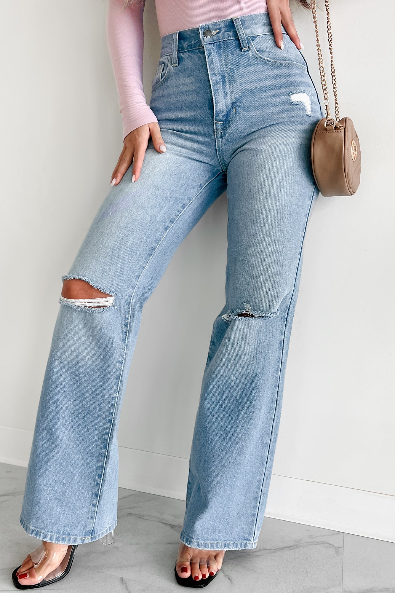 Make No Mistake Mid-Rise Wide Leg Risen Jeans (Medium)
