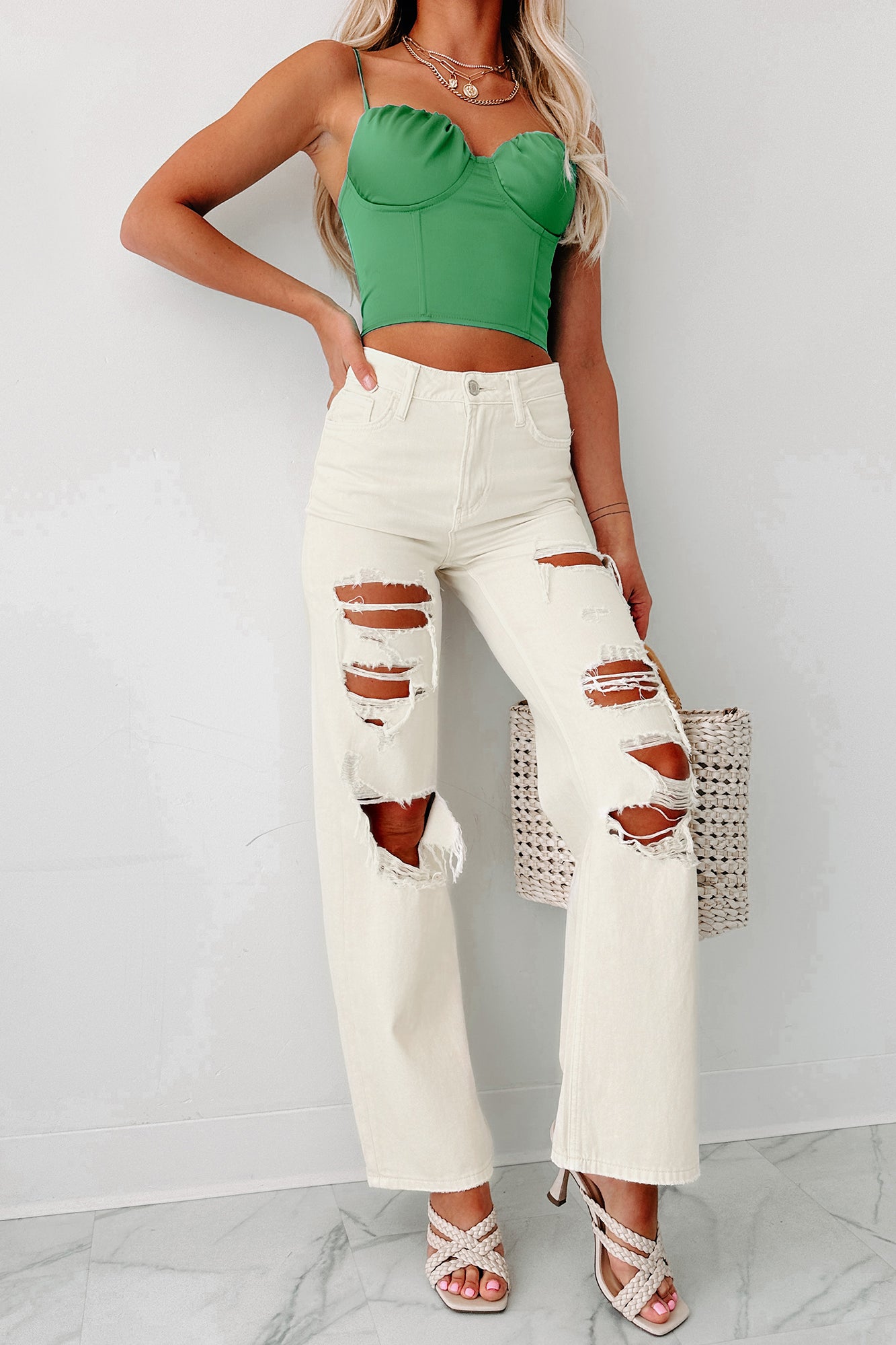 Stop Playin' High Rise Distressed Vervet Dad Jeans (Cream)