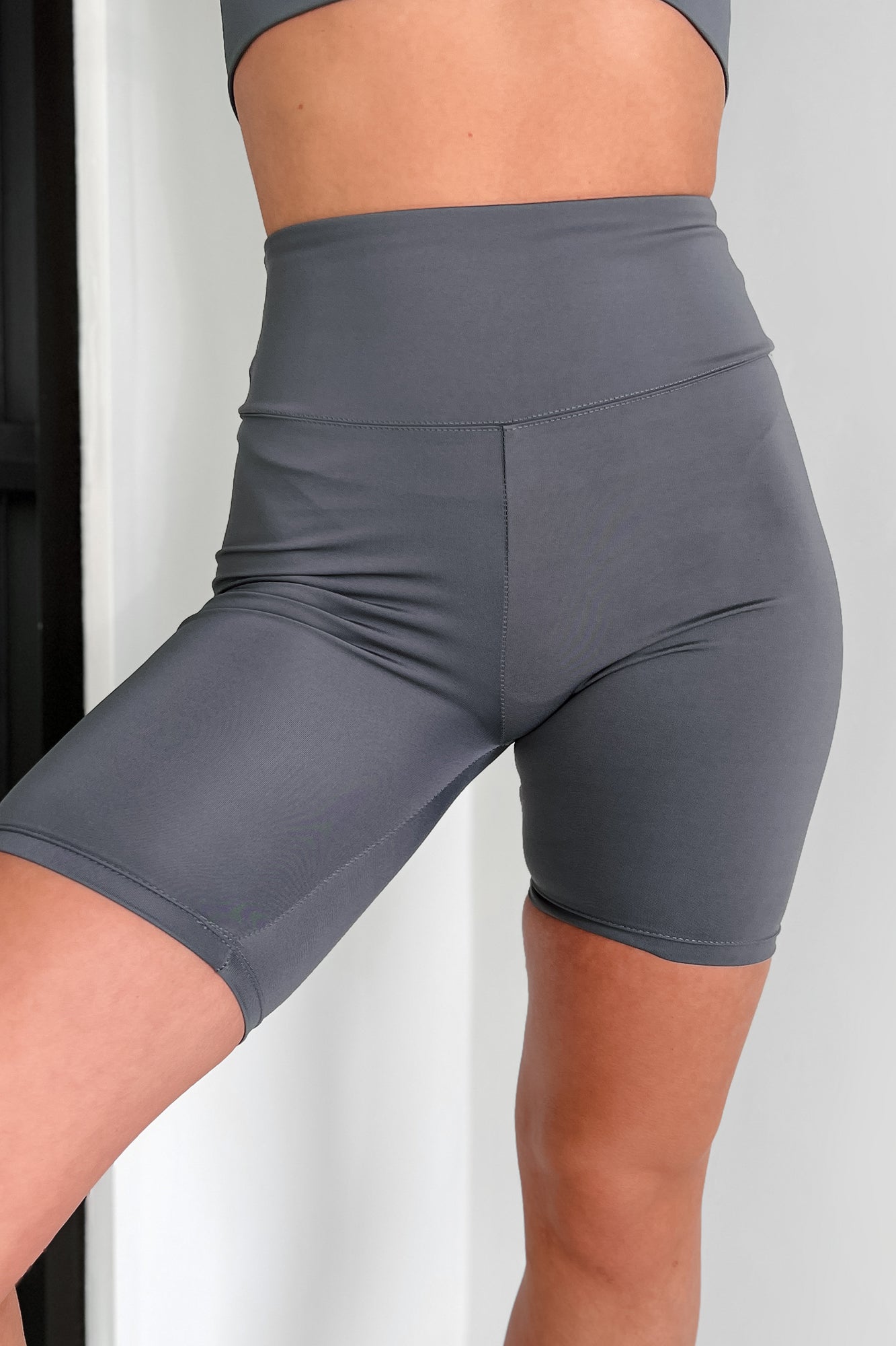 Crushing My Workouts High Waisted Biker Shorts (Midnight Charcoal)