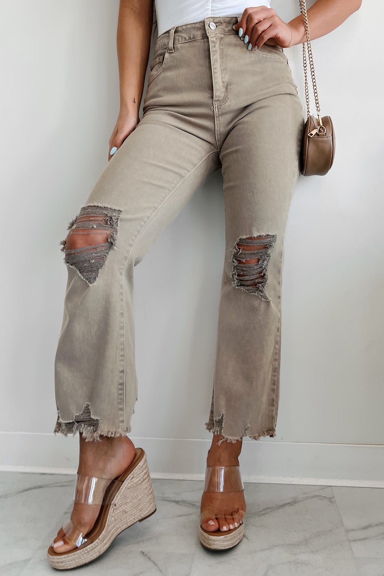 Lachlan High Rise Distressed Straight Leg Jeans (Ash Mocha)