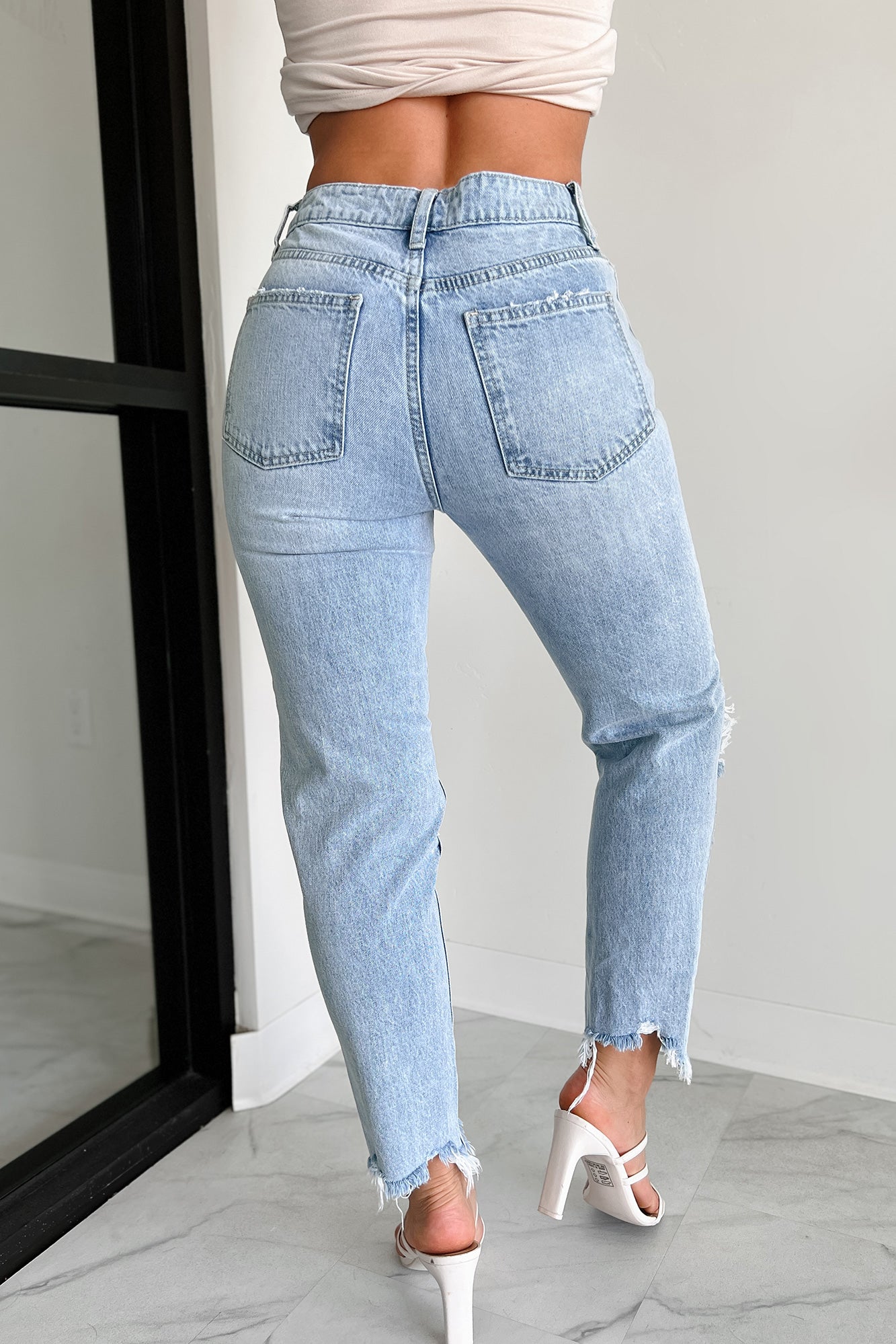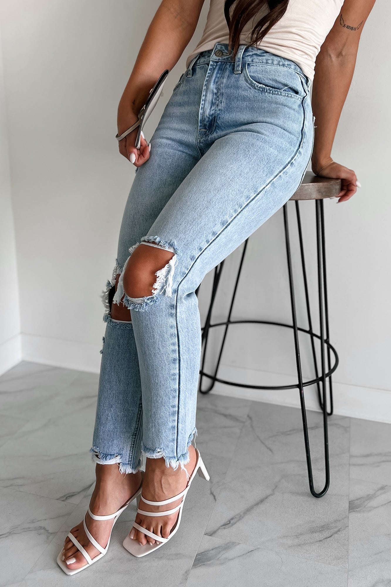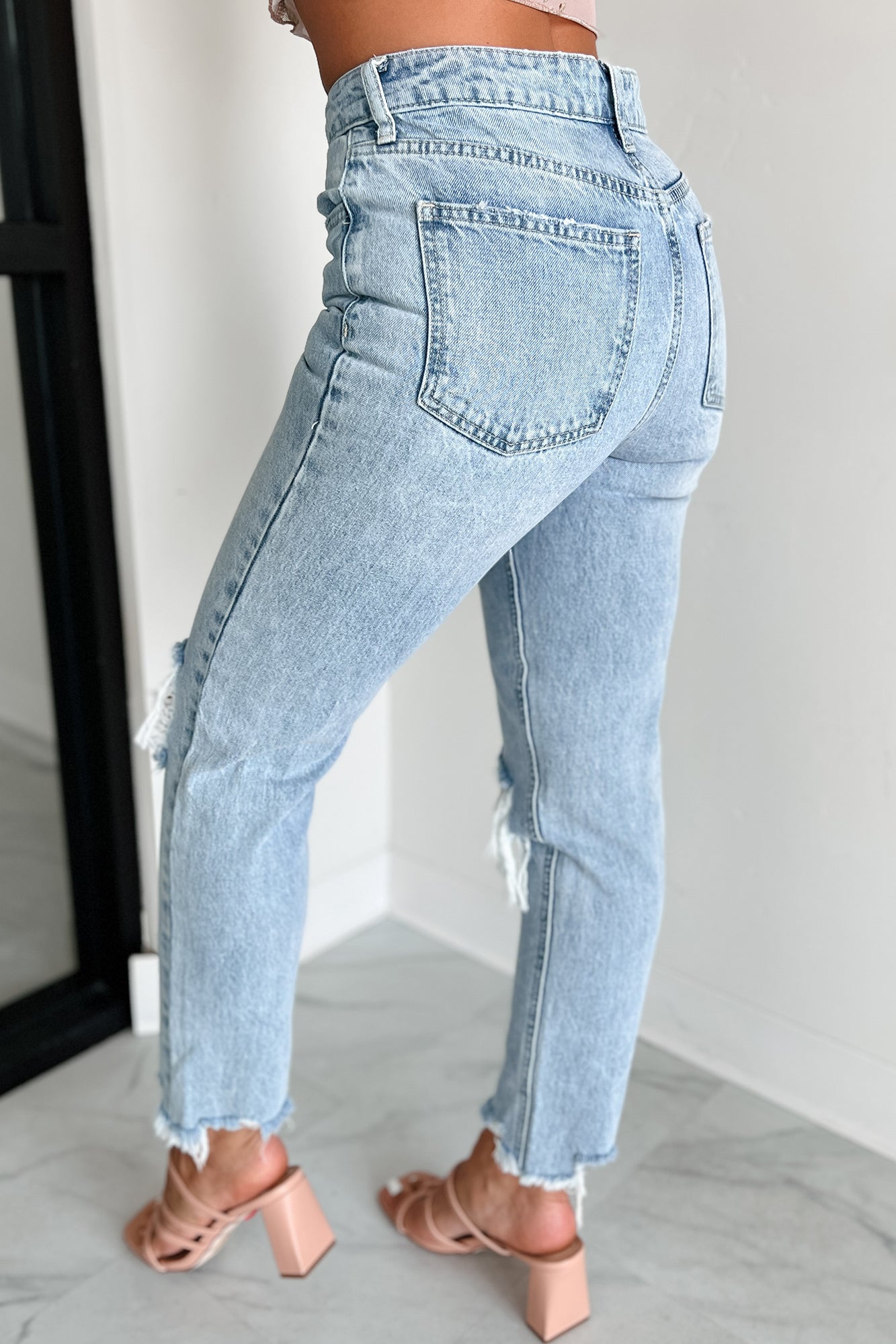 Alaina High Rise Distressed Boyfriend Jeans (Light Denim)