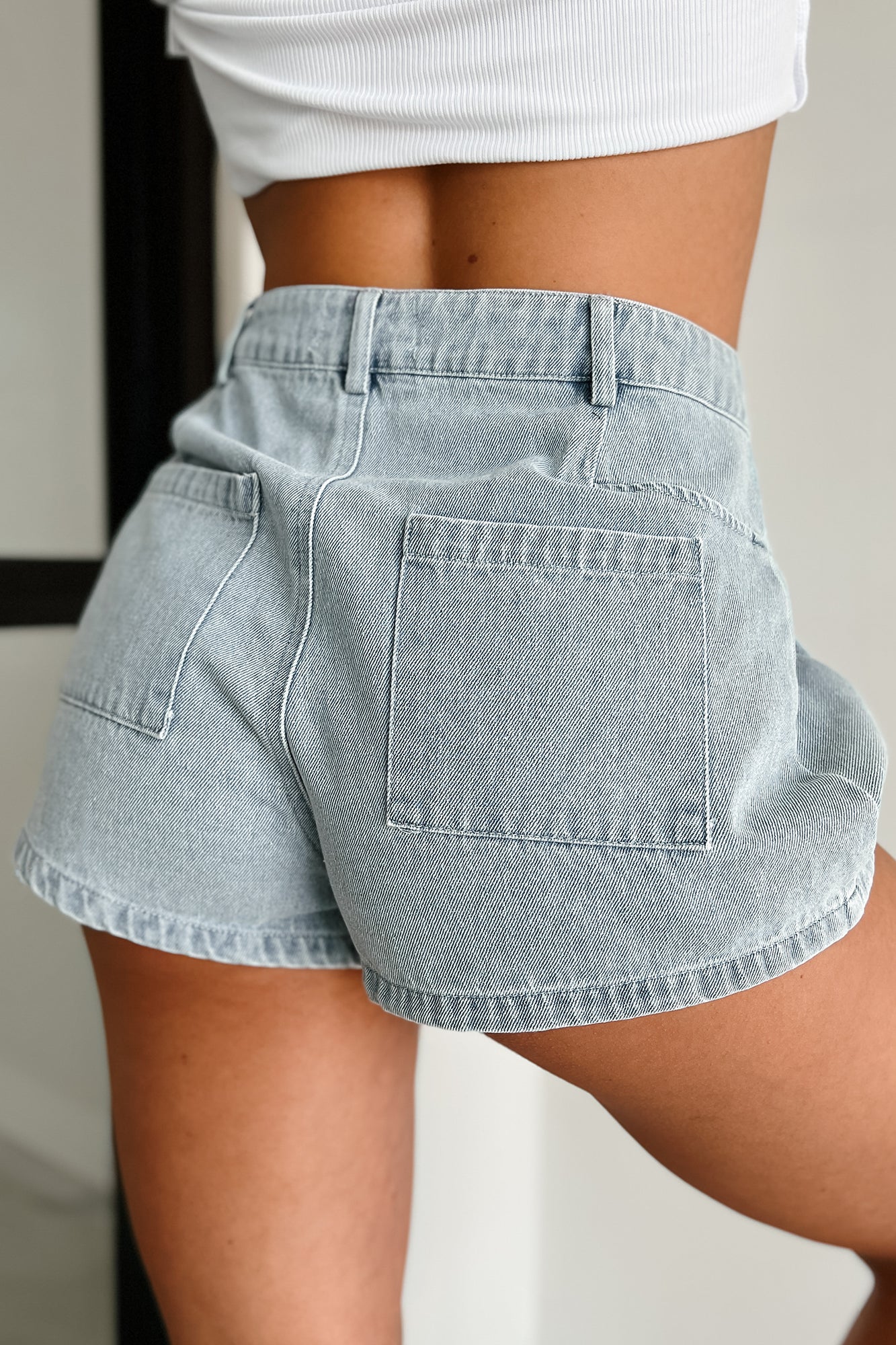 No One To Blame Pleated Denim Shorts (Washed Denim)