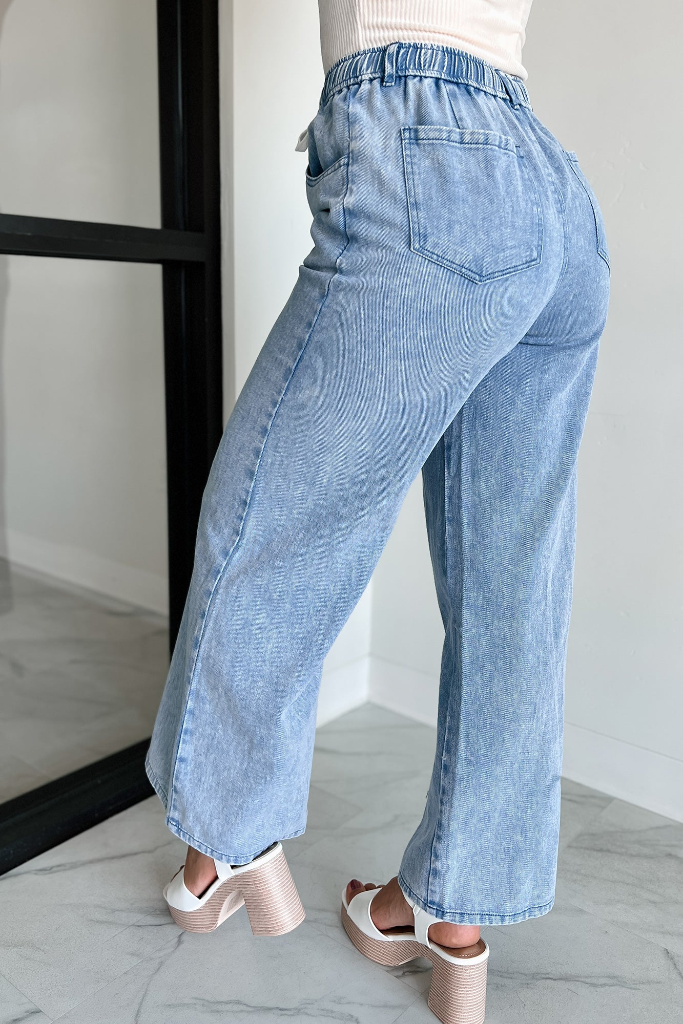 Sunny In San Fran Wide Leg Denim Pants (Denim Blue)