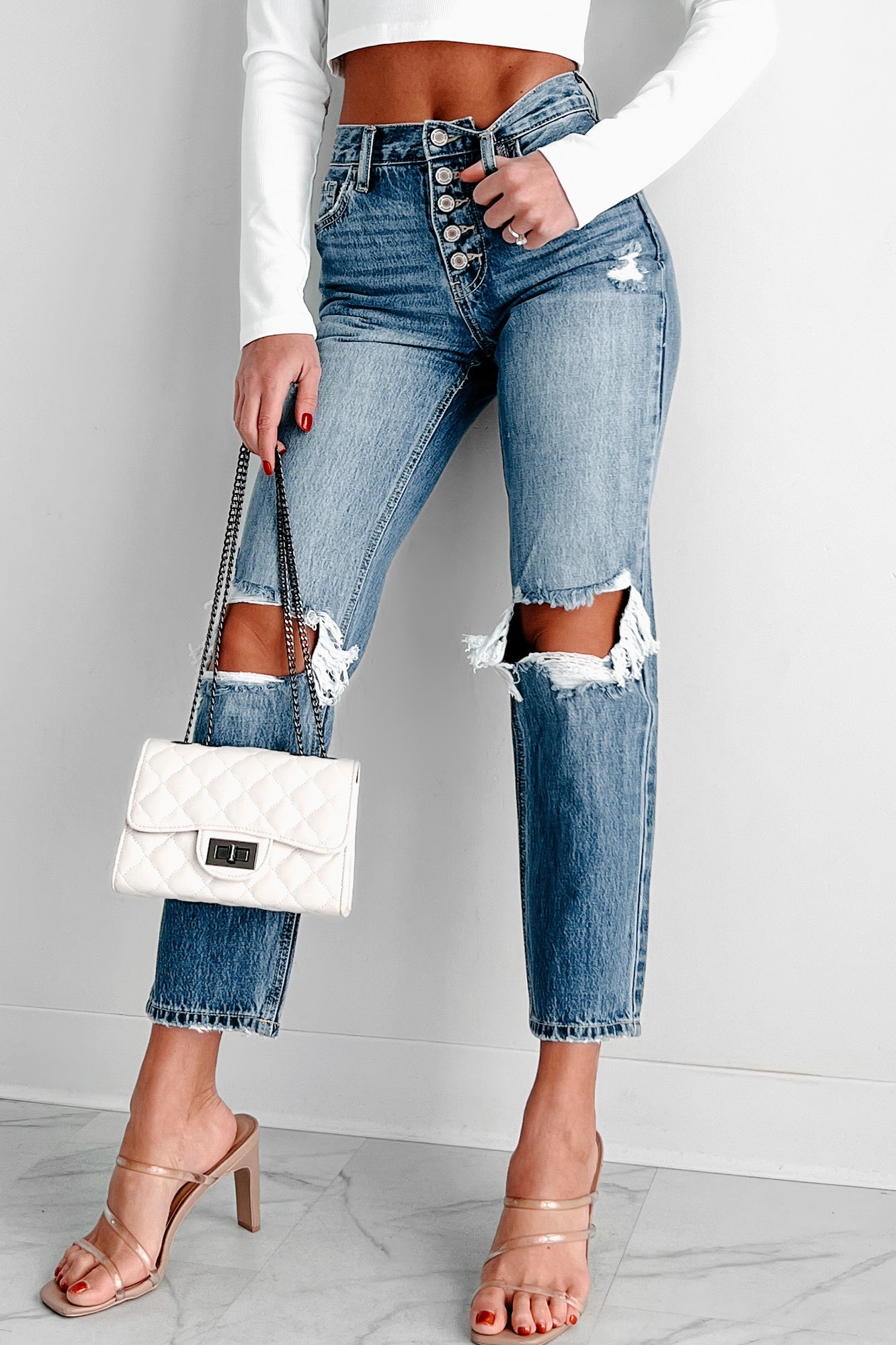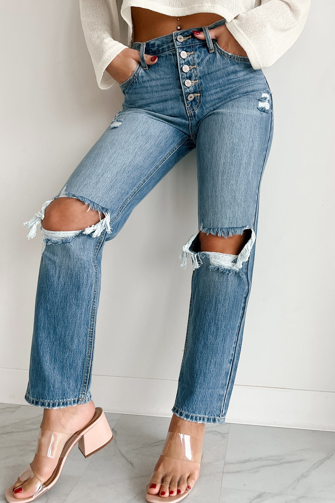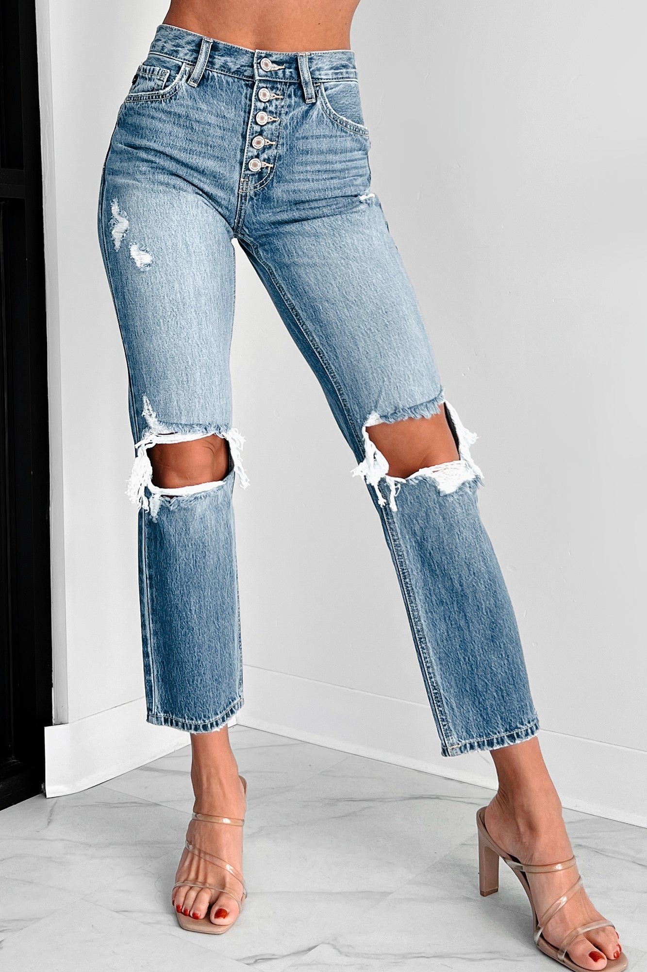 Tyne High Rise Button-Fly Kancan Straight Leg Jeans (Medium)