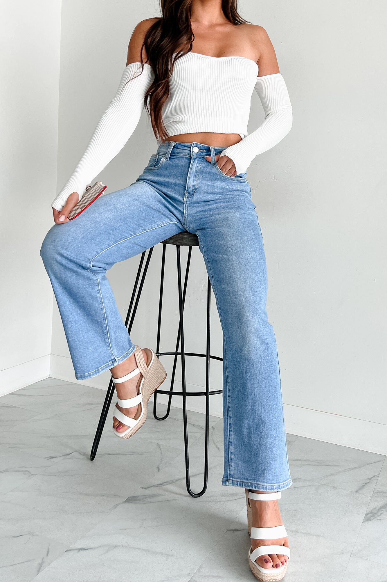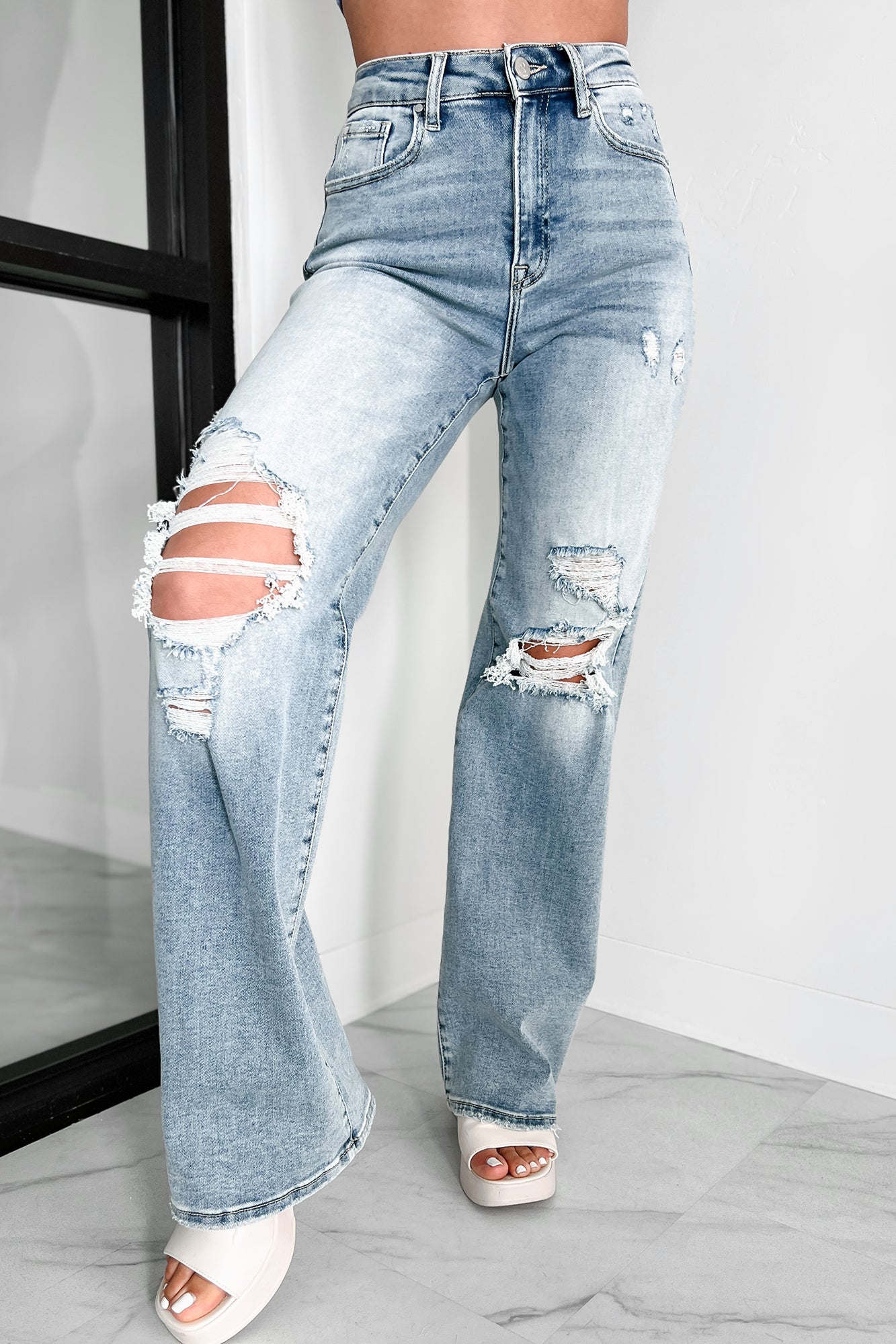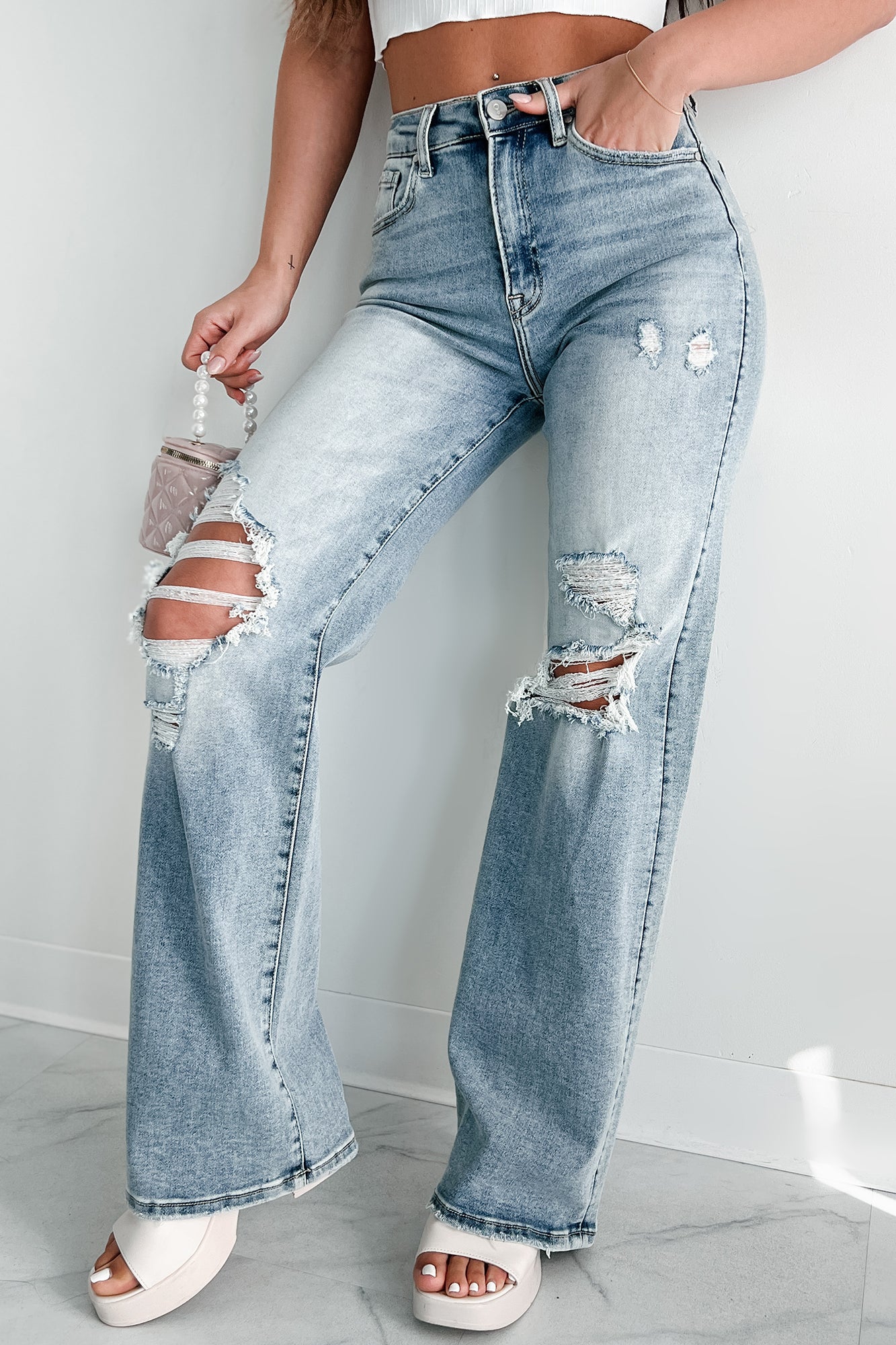 Kyra High Rise Distressed Wide Leg Sneak Peek Jeans (Medium Light)