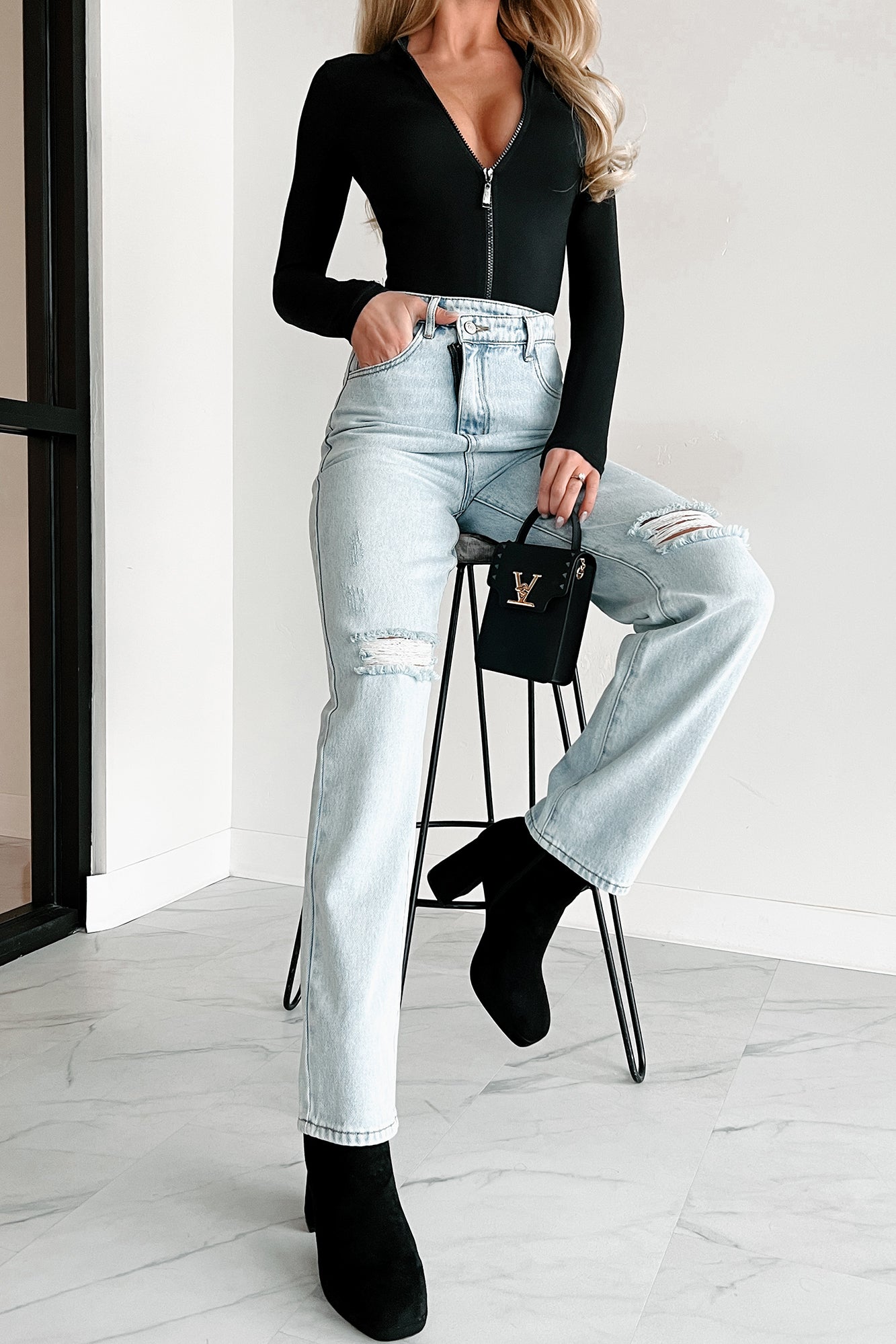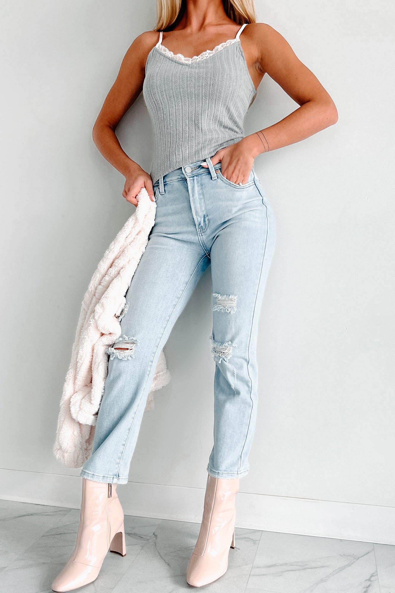 Belinda High Rise Distressed Straight Leg Jeans (Light)