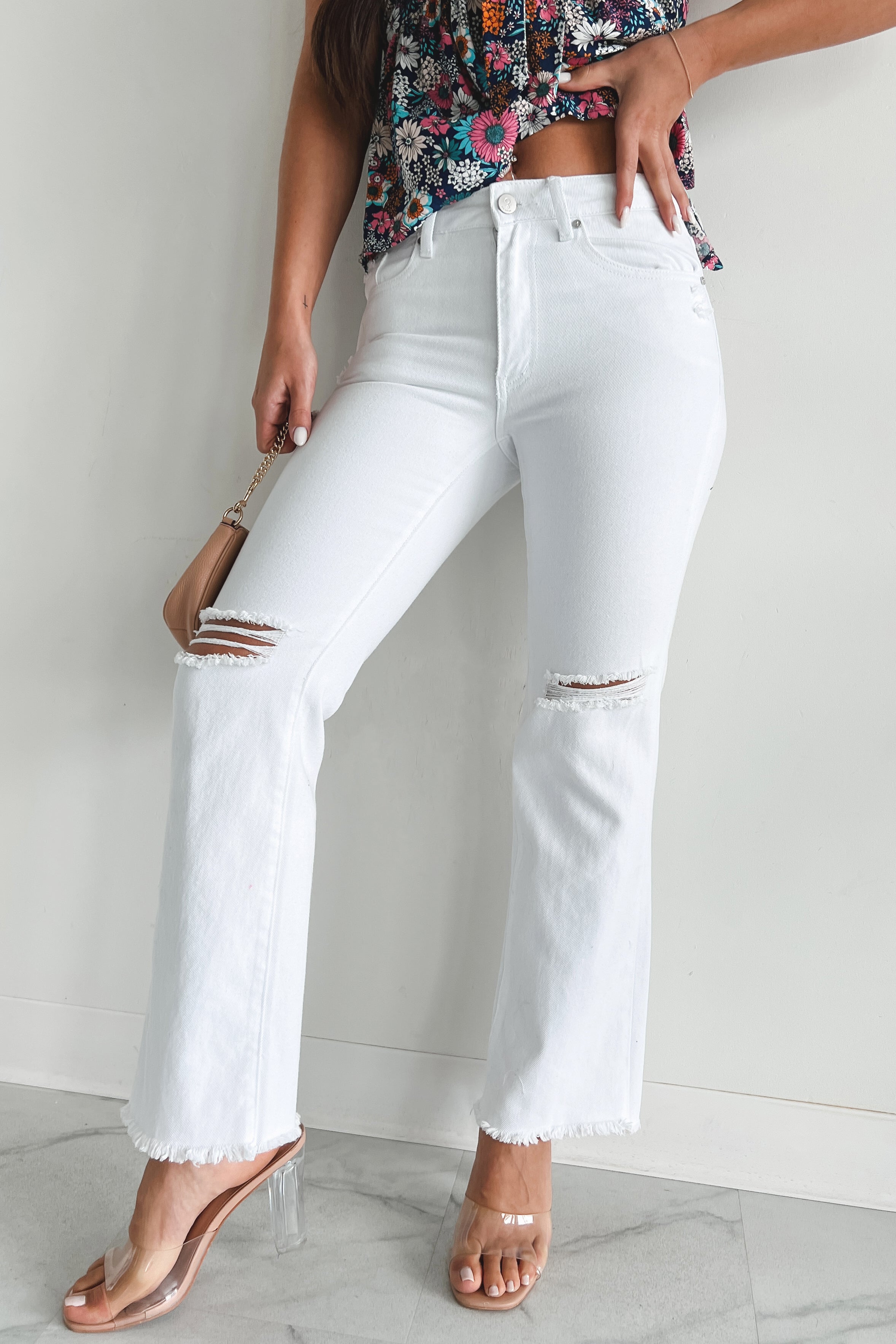 Keeping You Pleased High Rise Distressed Flare Jeans (Sky Blue)