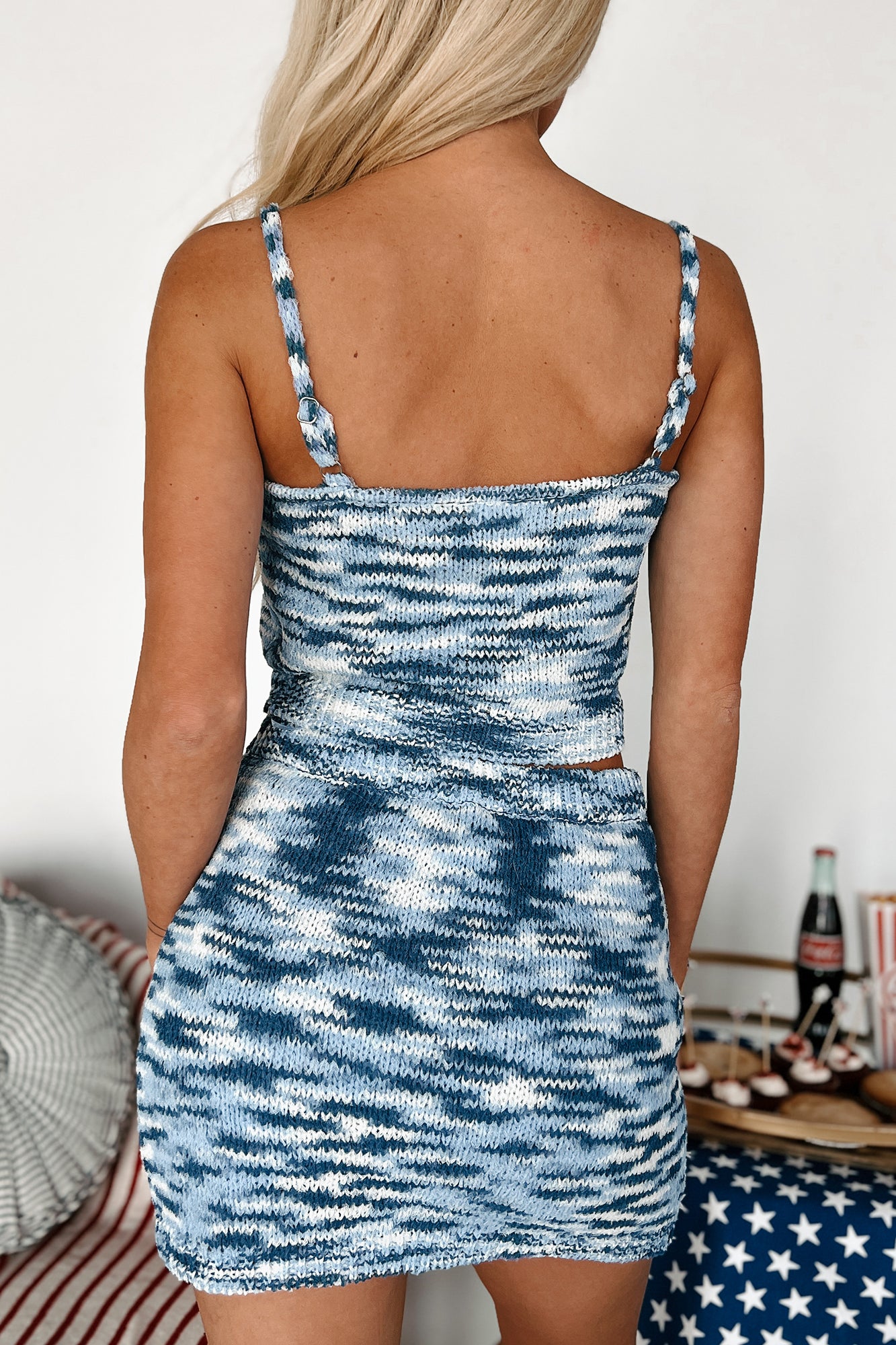 - Top: Adjustable Straps, Square Neckline, Cropped Length