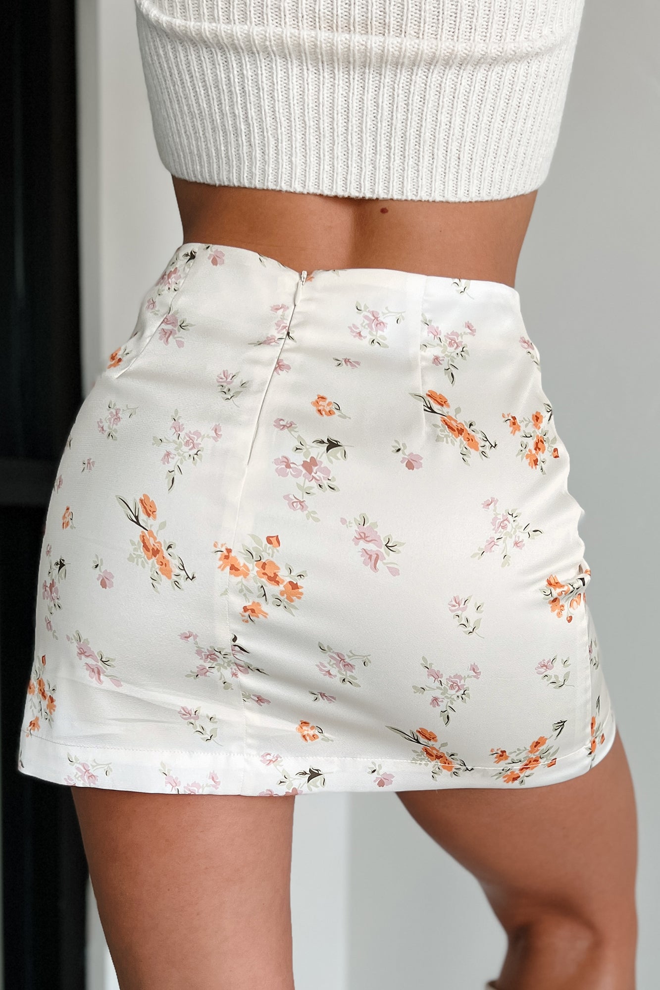 Capturing Magic Satin Floral Mini Skirt (Cream)
