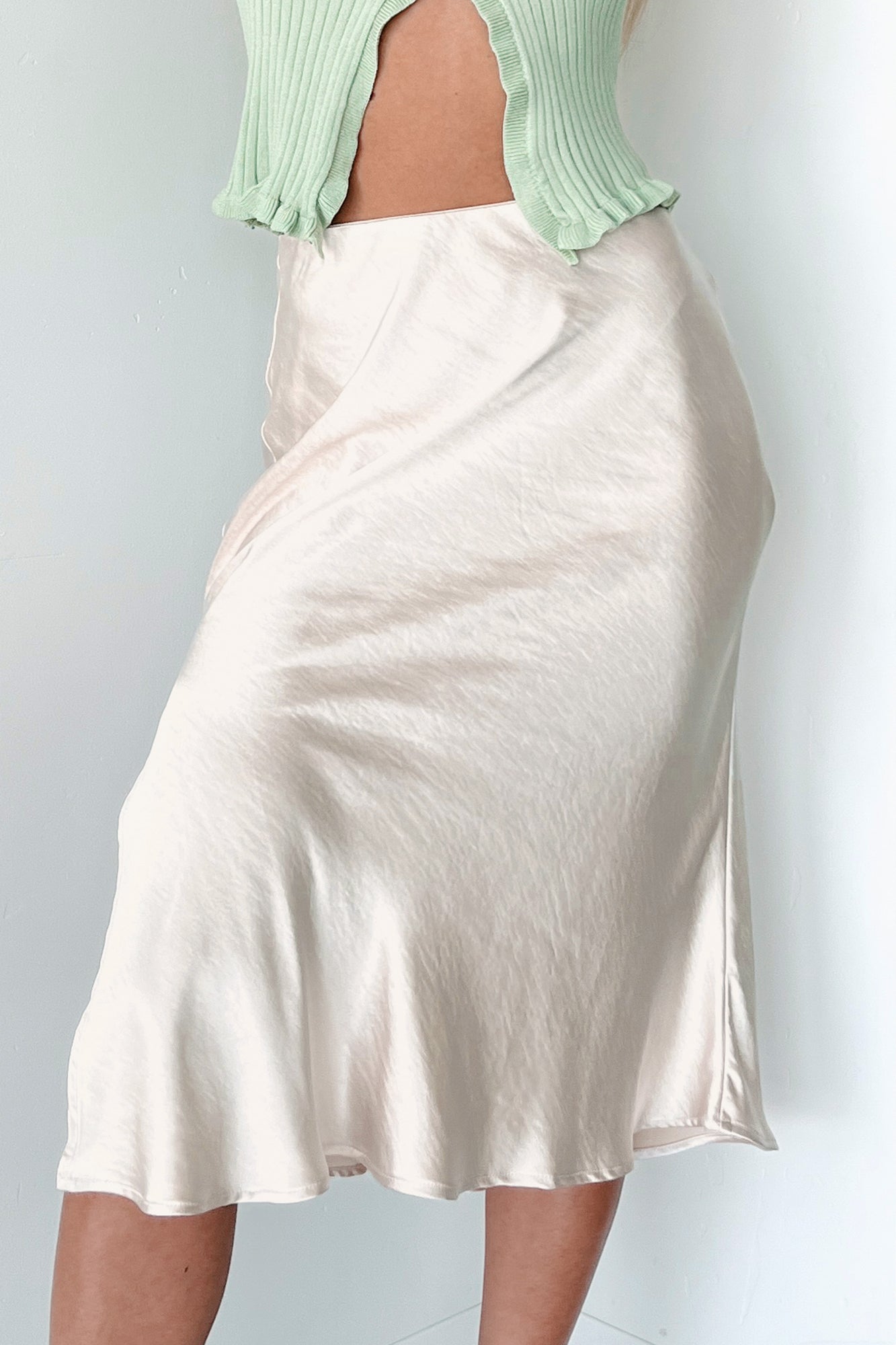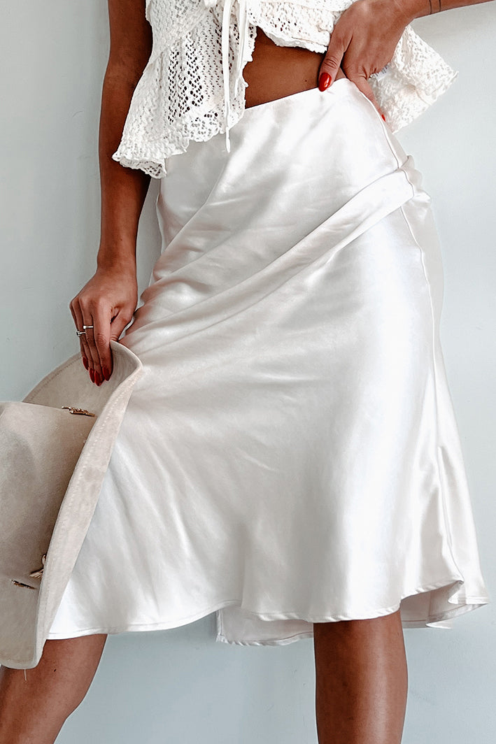 Charmed I'm Sure Satin Midi Skirt (Cream)