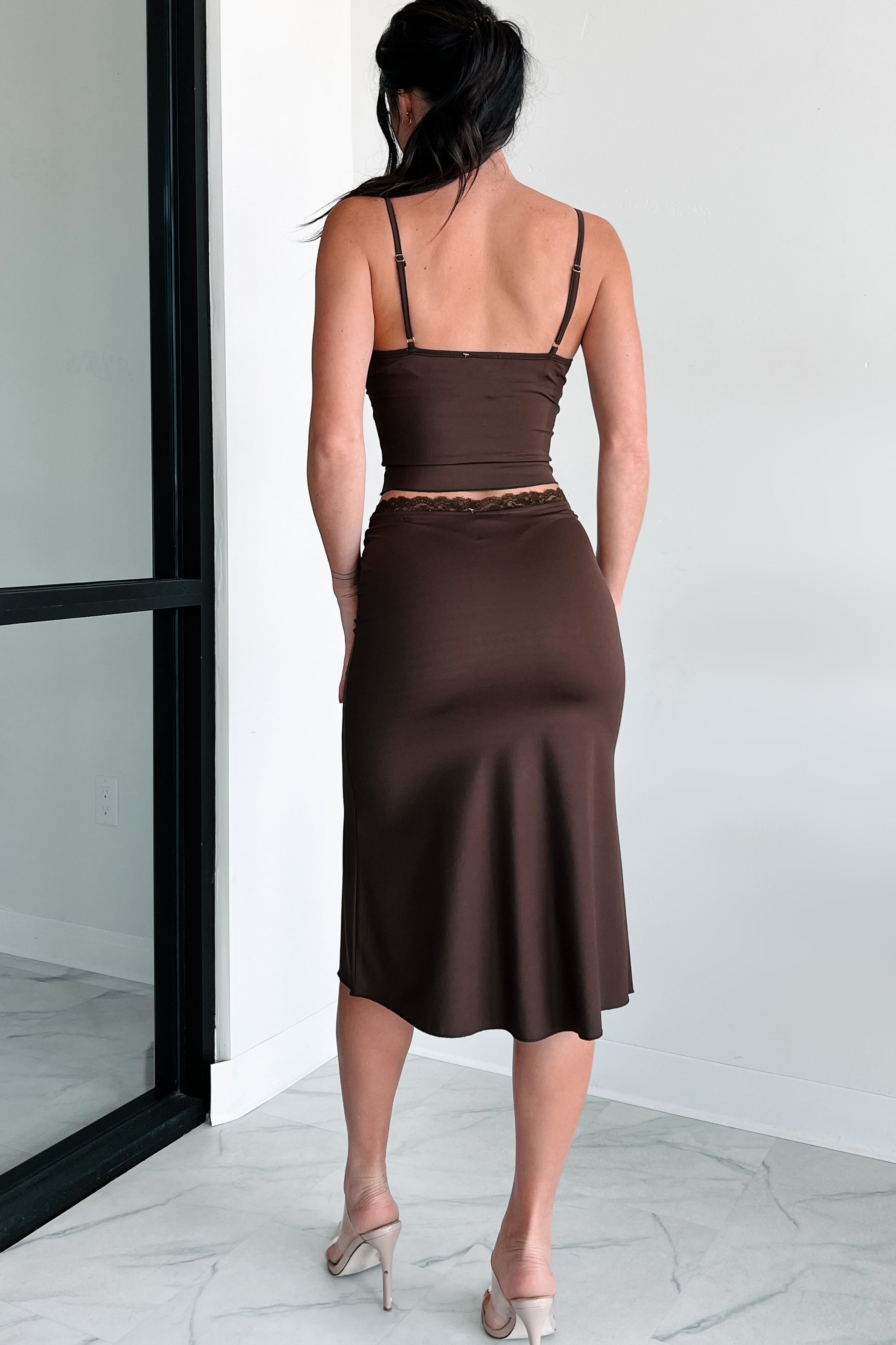 - Skirt: Elastic Waistline - With Lace Trim, A-Line, Midi Length