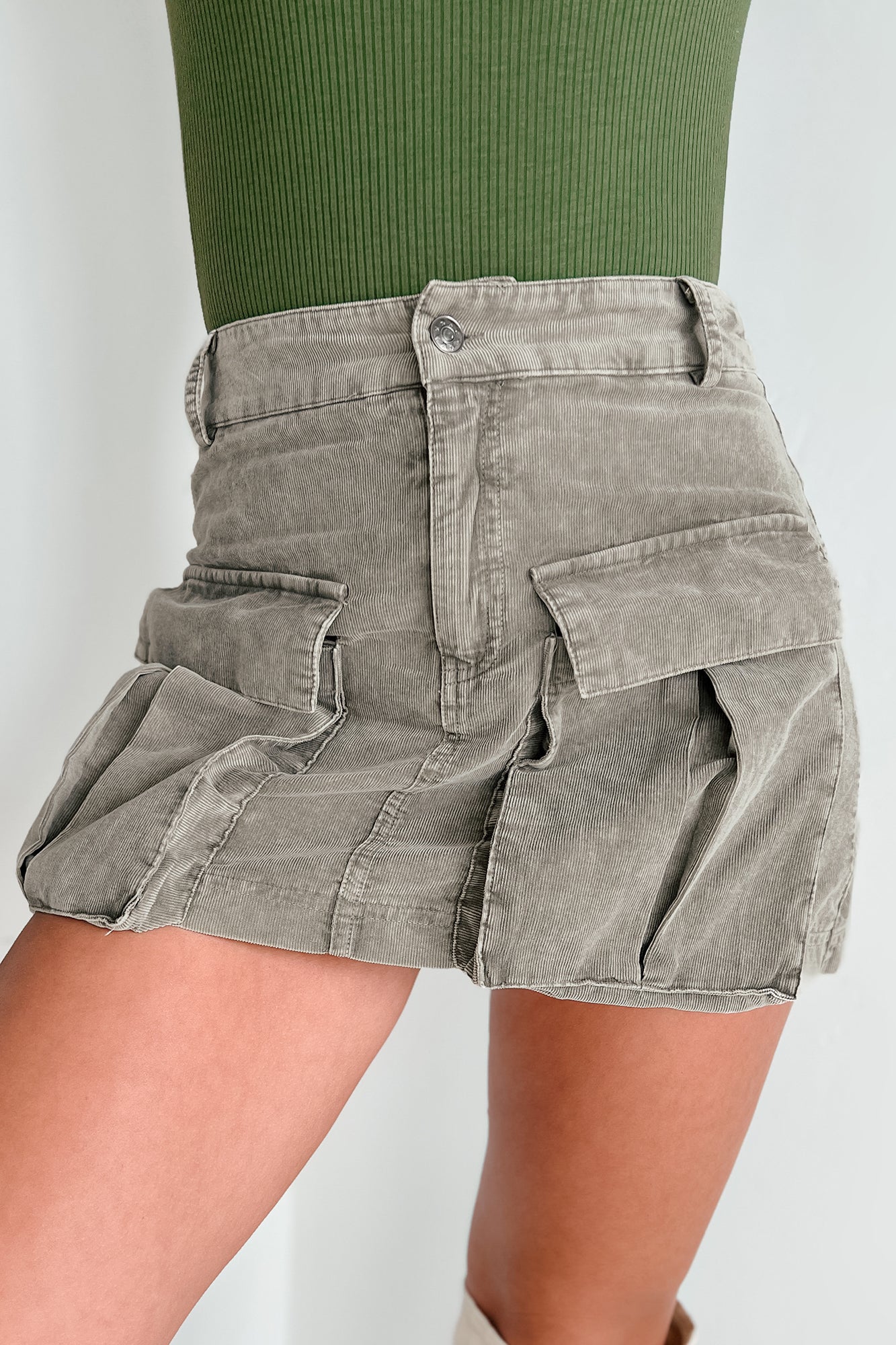 Giving You Credit Cargo Pocket Corduroy Mini Skirt (Stone Oak)