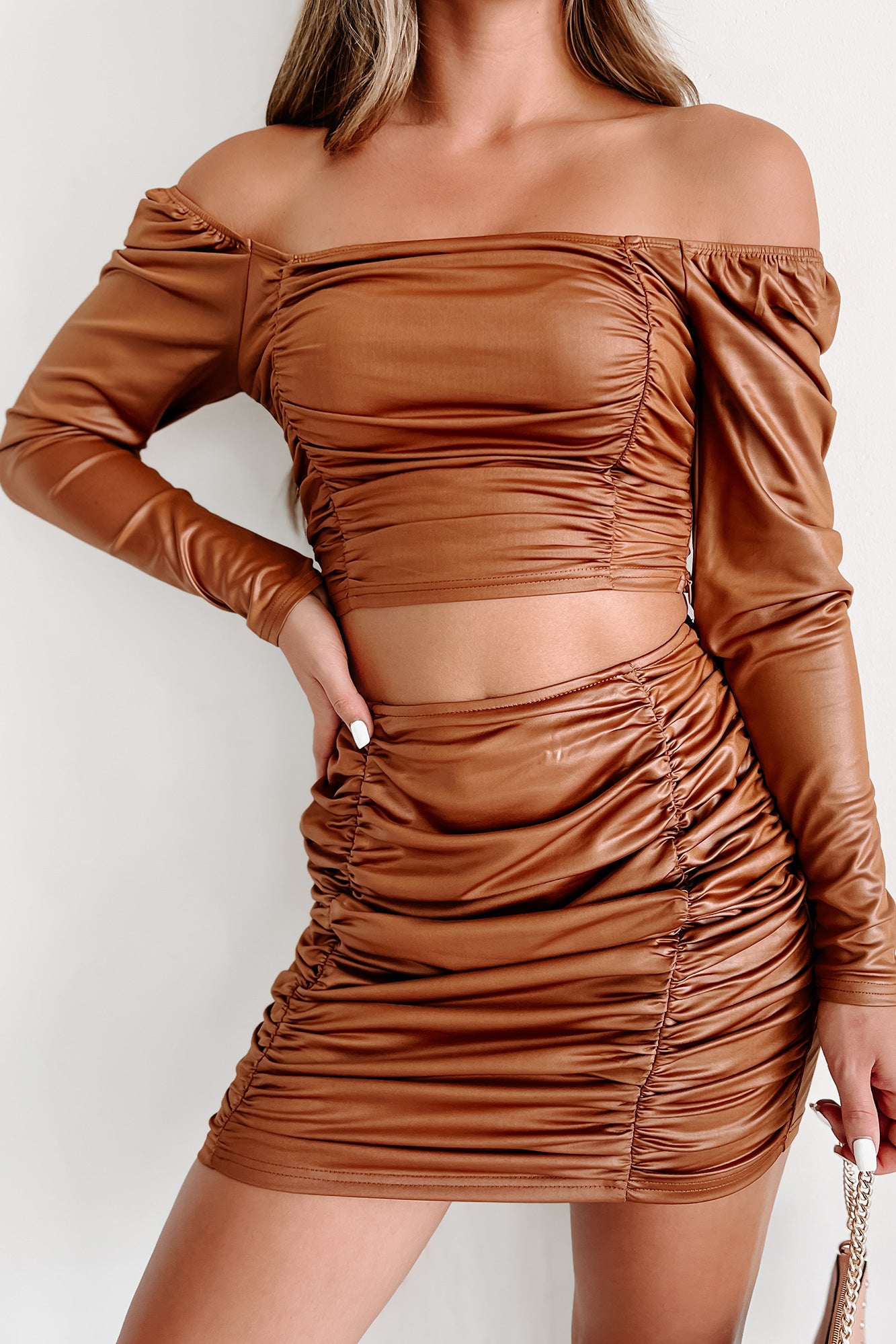 Sound Off Ruched Crop Top & Mini Skirt Set (Brown)
